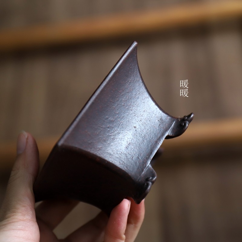 『撇脚敞口正方』古铜泥/古红泥 中国宜兴 紫砂小花盆