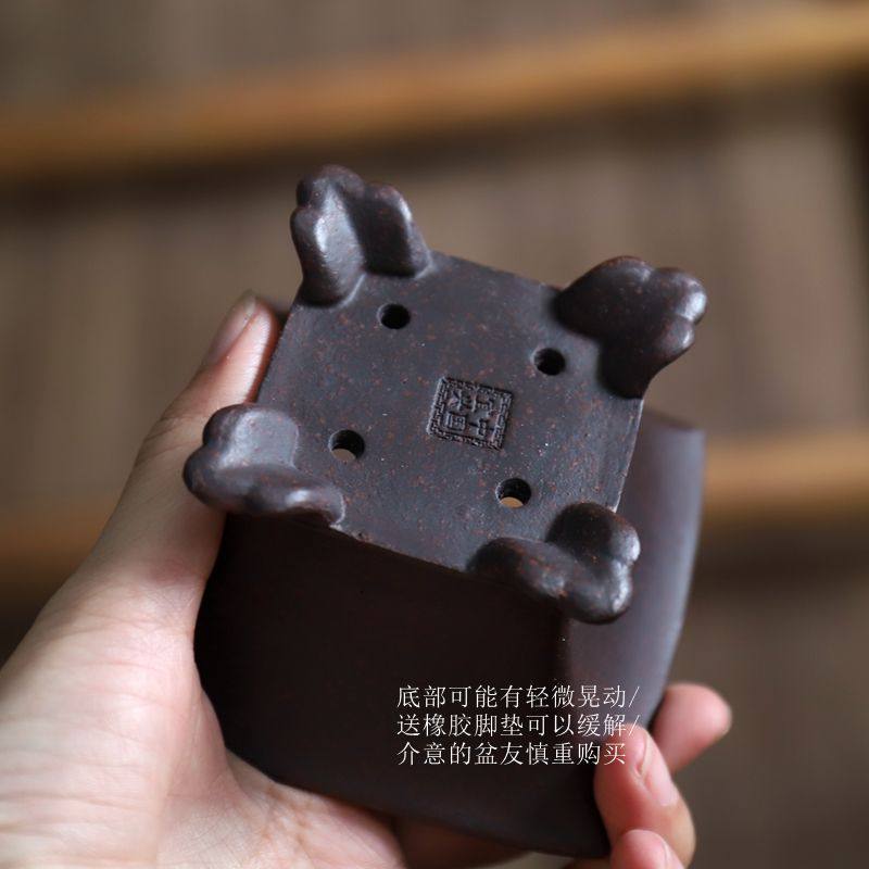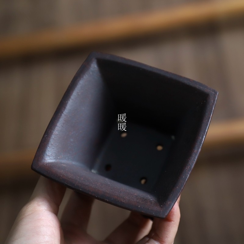撇脚正方中国宜兴复古微型花盆