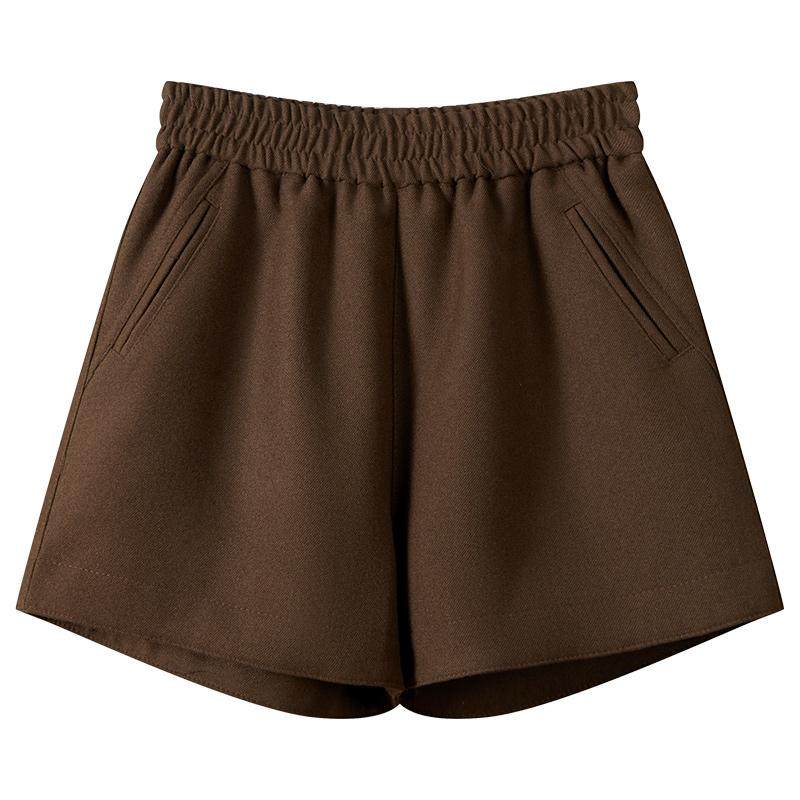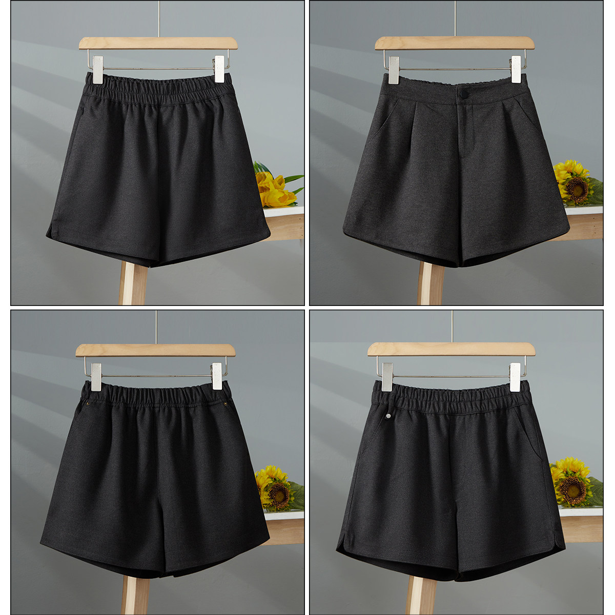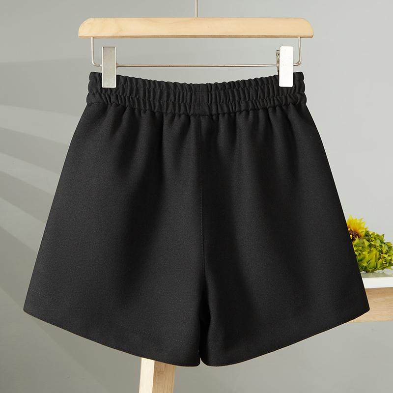 秋冬毛呢短裤女2025新款松紧高腰设计感洋气外穿a字阔腿打底靴裤