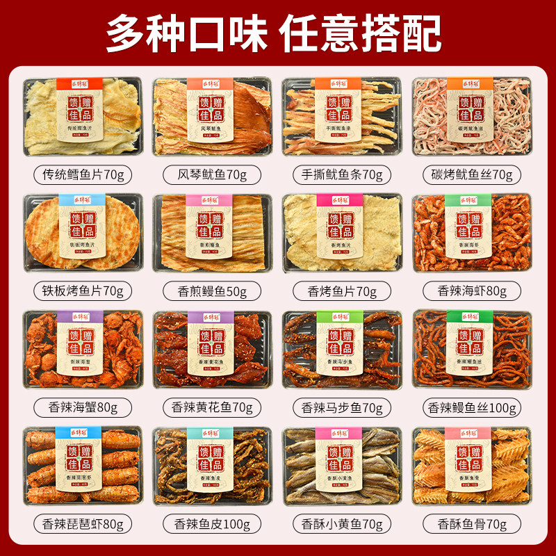山东青岛特产水晶盒海鲜伴手礼鳕鱼片鱿鱼丝十二道海味年货送礼