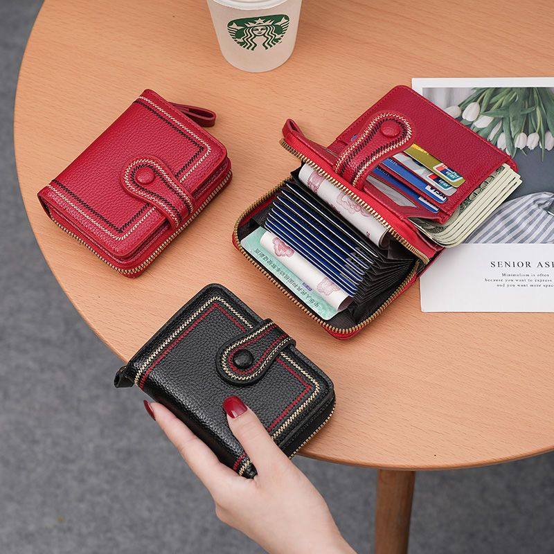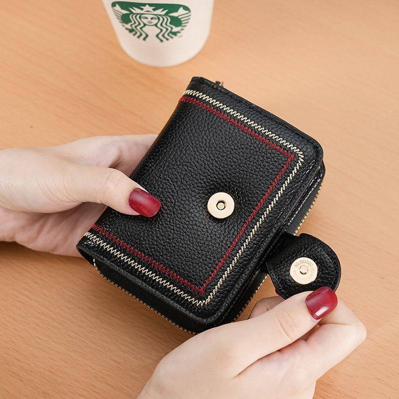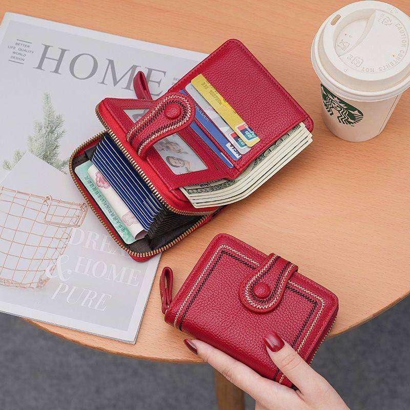 新款小钱包女短款真皮质感零钱包多卡位防消磁卡包钱包一体女钱夹