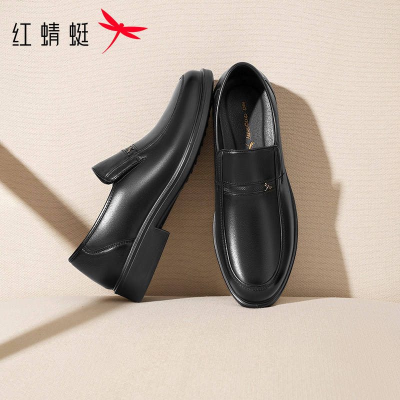 红蜻蜓男士皮鞋真皮软底男鞋舒适中老年一脚蹬鞋子男款休闲爸爸鞋