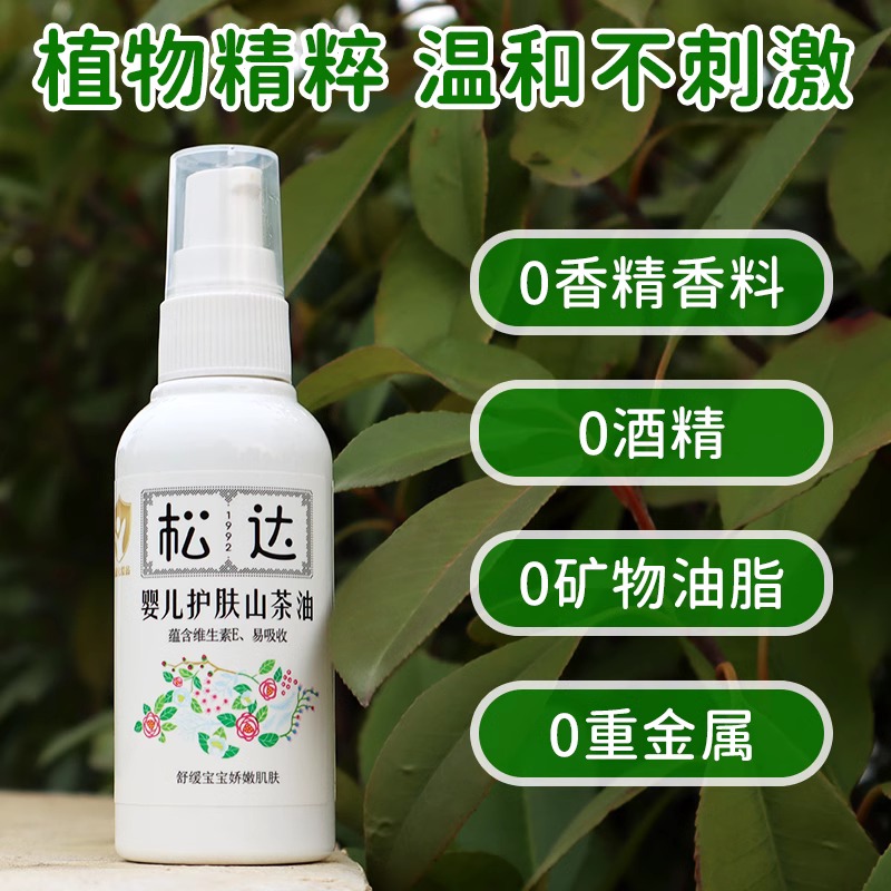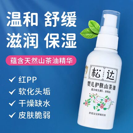 松达婴儿护肤山茶油宝宝润肤油按摩油/抚触新生儿护臀膏红PP可用