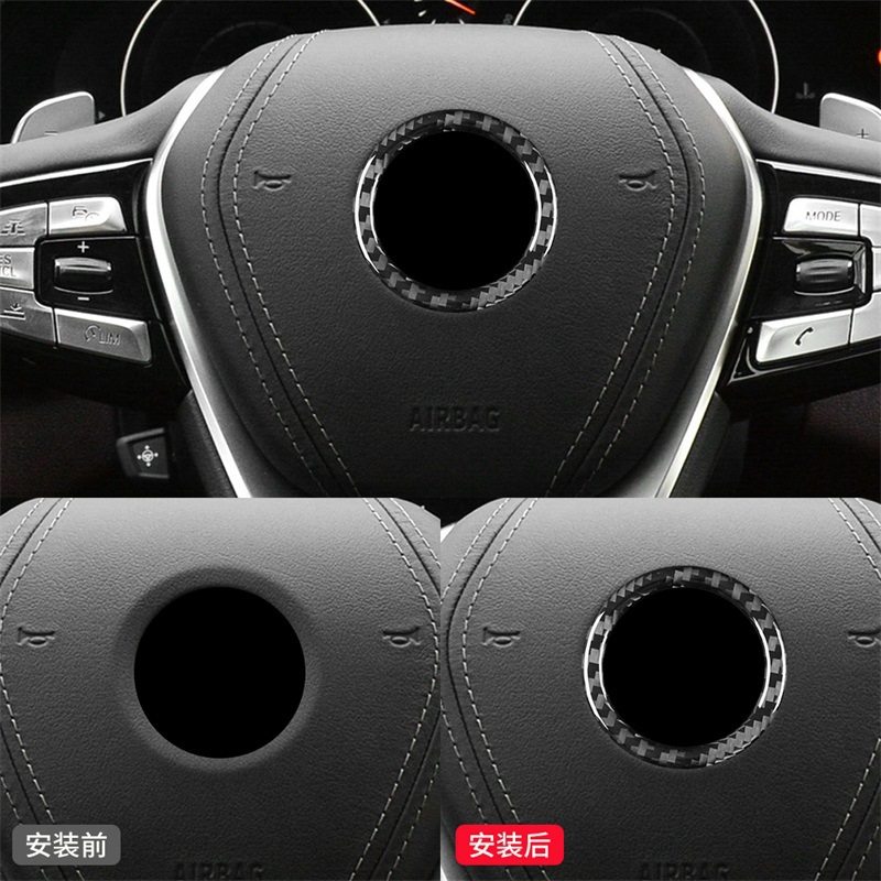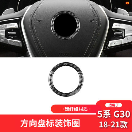 适用于宝马18-21款5系G30内饰改装件方向盘车标圈碳纤维装饰贴