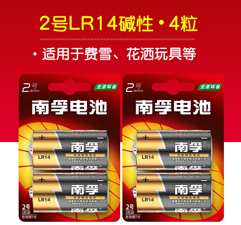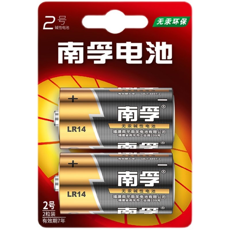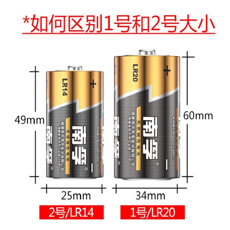 南孚二号电池C型LR14碱性2号适用面包超人花洒摇椅费雪玩具中号