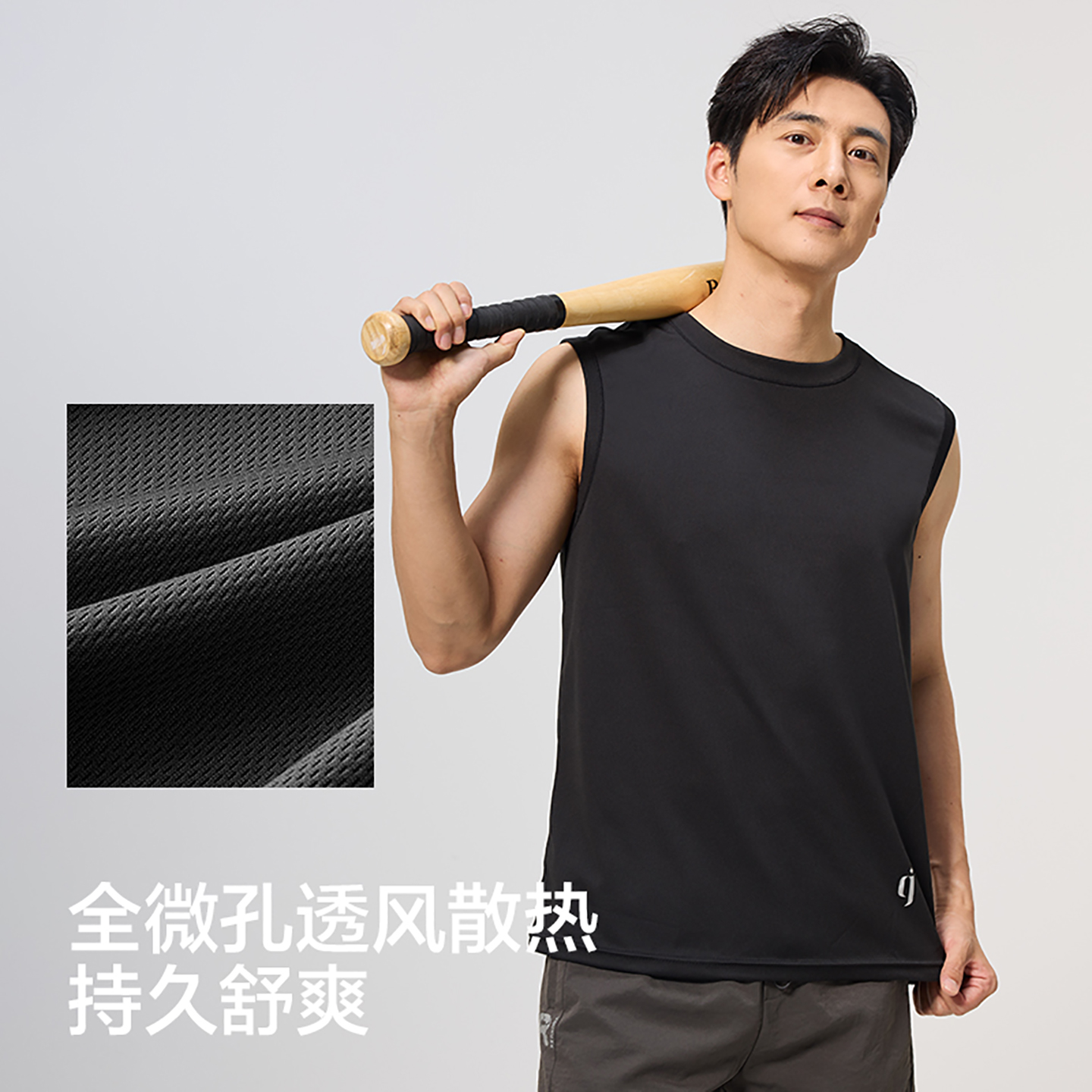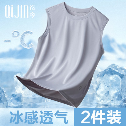 迄今男士背心冰丝速干透气网孔宽肩运动打底无袖跑步夏季大码薄款