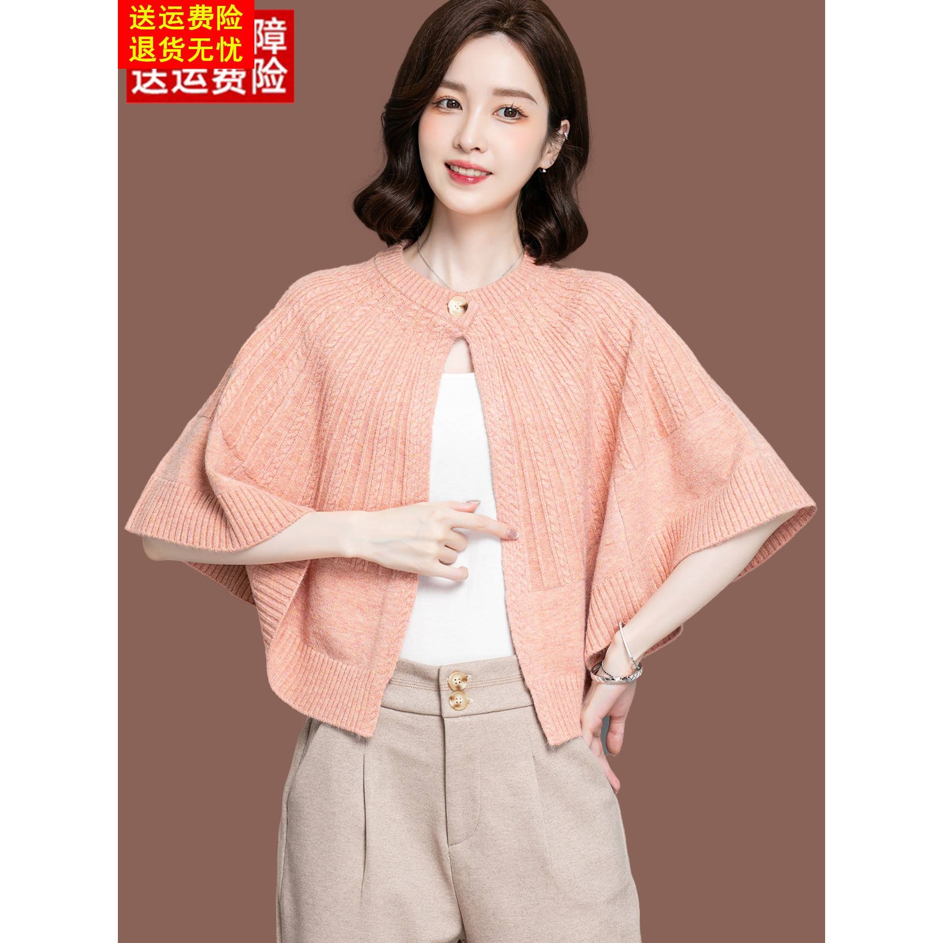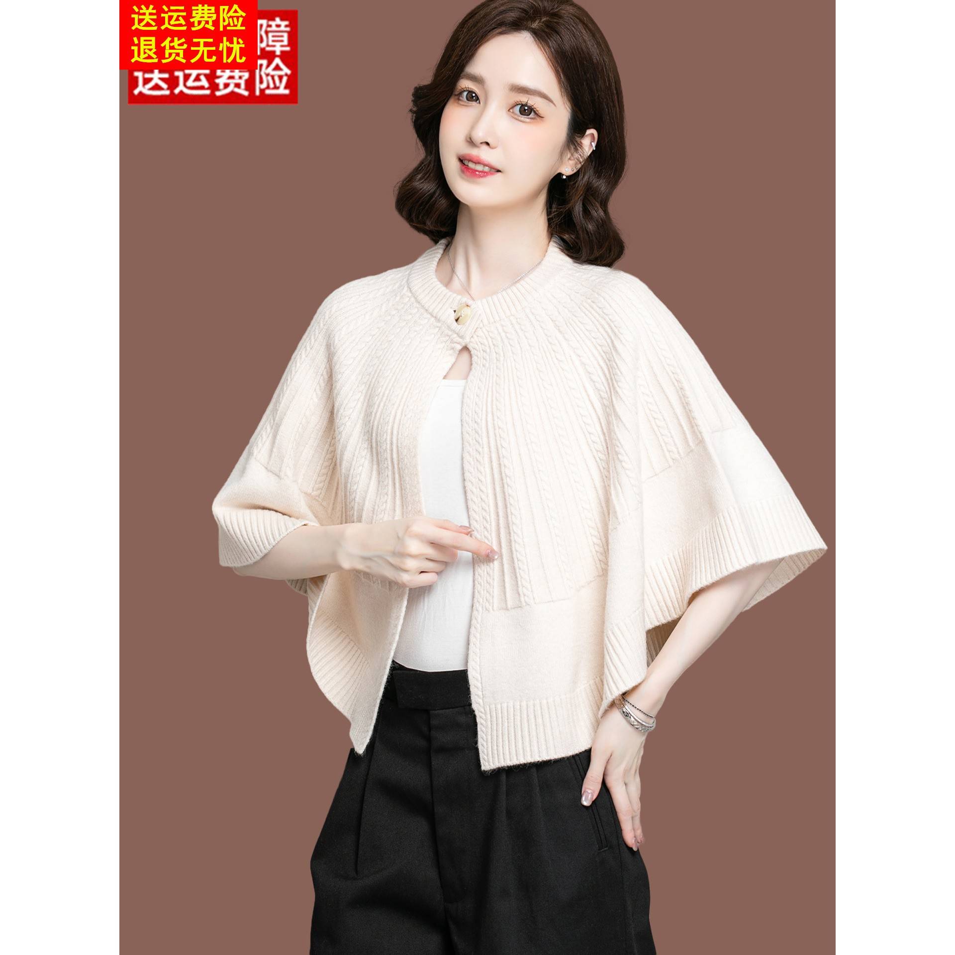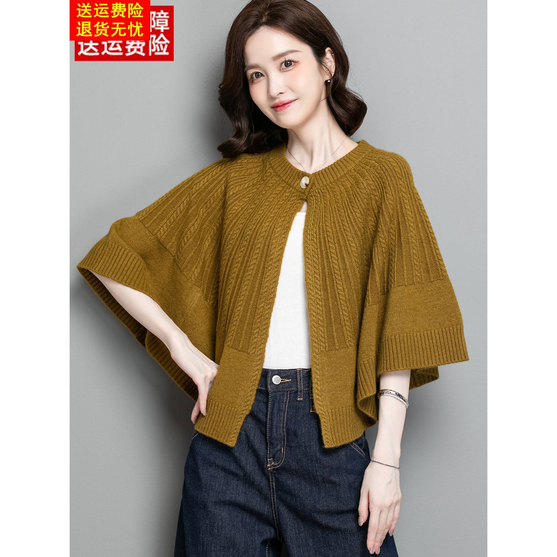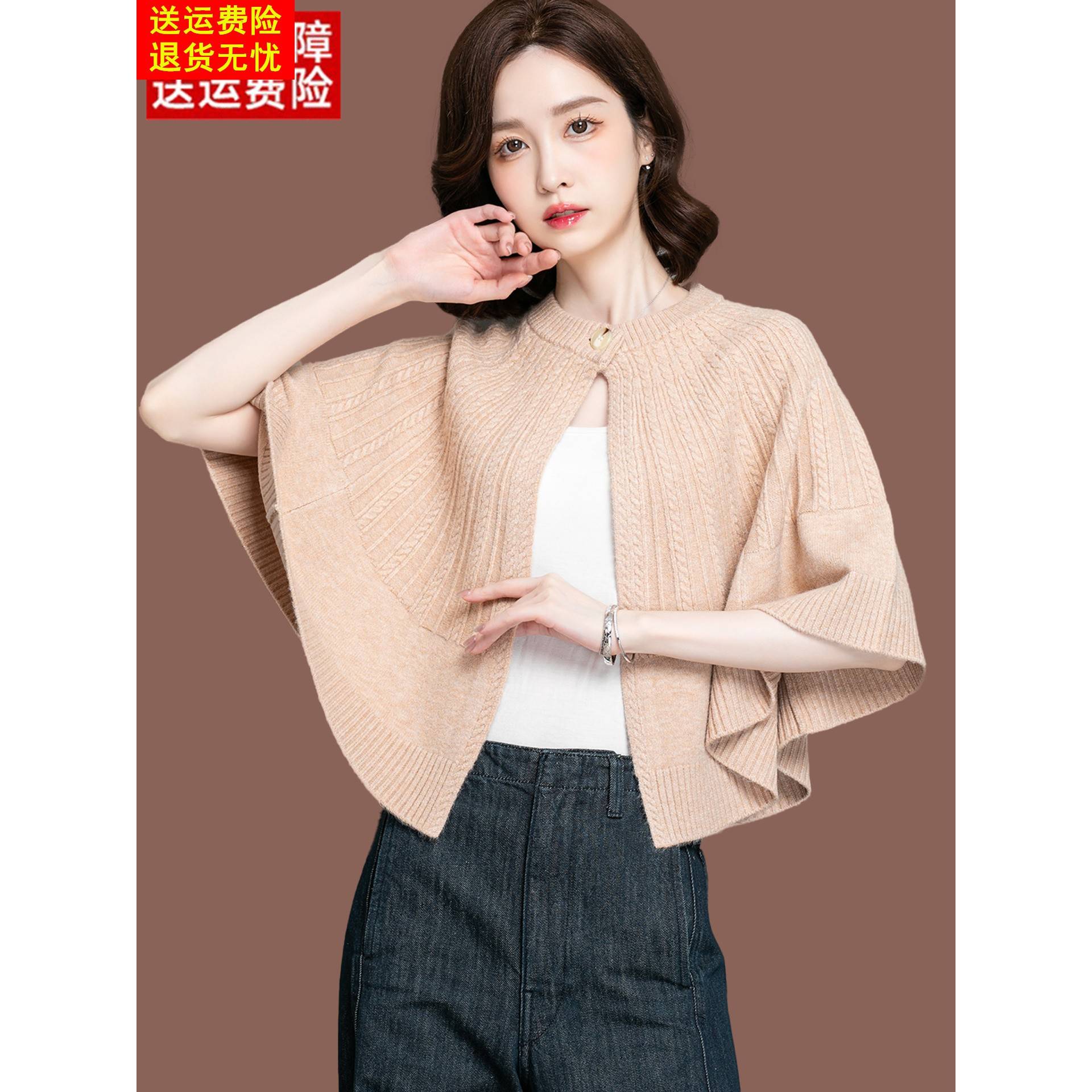 羊毛针织开衫女春秋新款小个子短款配裙斗篷披肩外搭红色毛衣外套