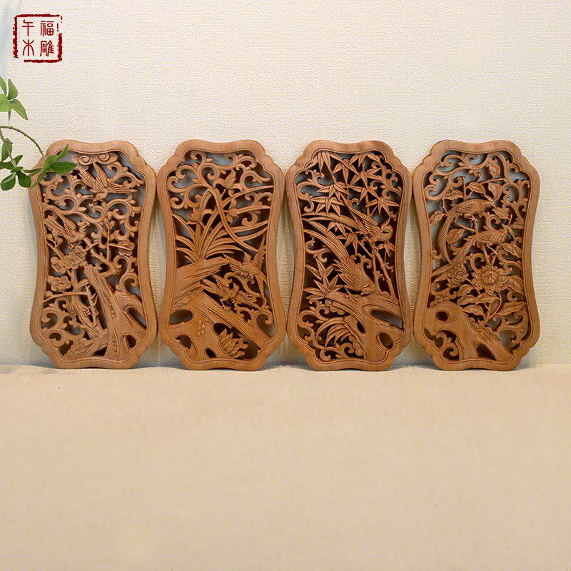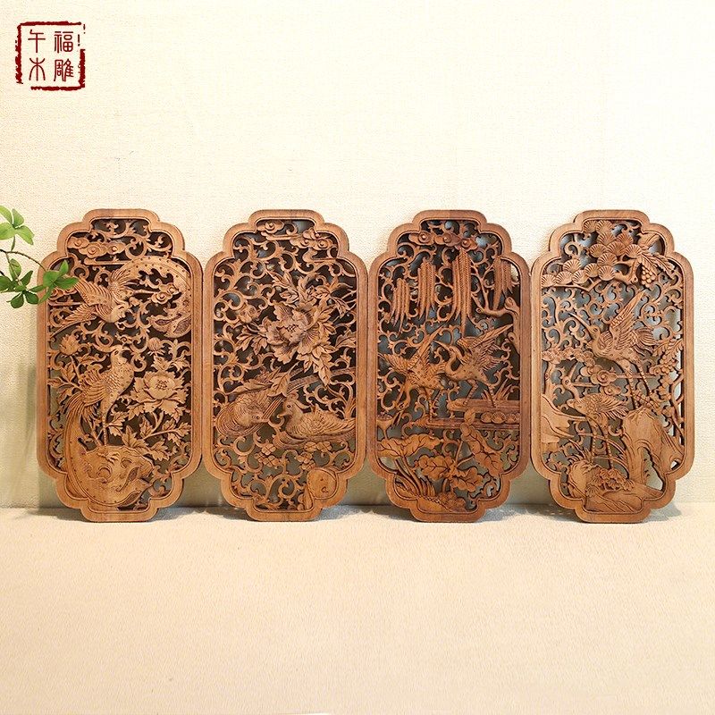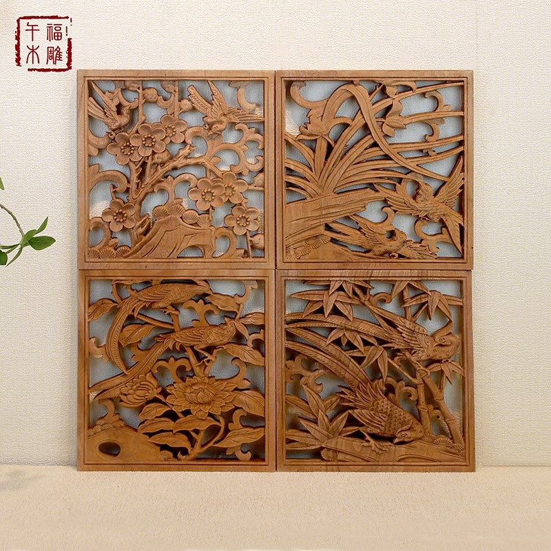 东阳木雕挂件实木雕刻工艺品中式镂空雕花客厅玄关背景墙壁挂花鸟