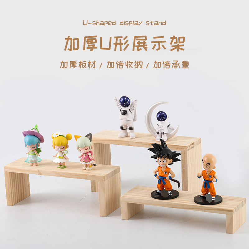 U型木质泡泡玛特收纳架置物架手办收纳盒公仔展示架首饰展示