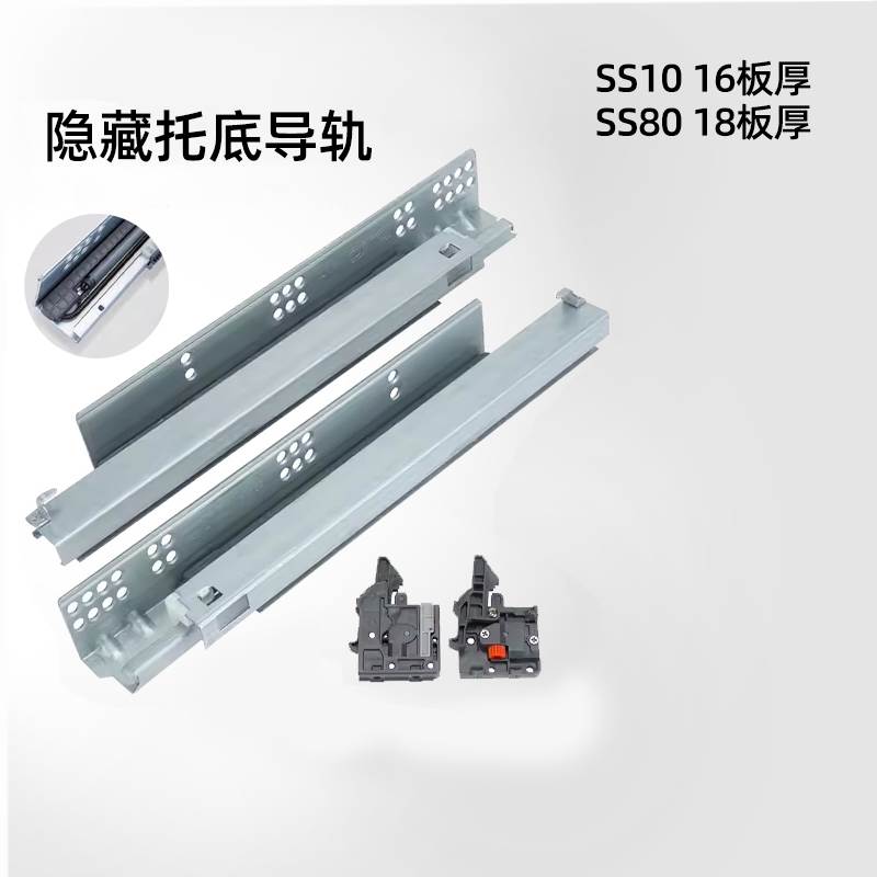 DTC东泰三节托底轨全拉出滑轨道隐藏式阻尼缓冲抽屉导轨ss80ss10