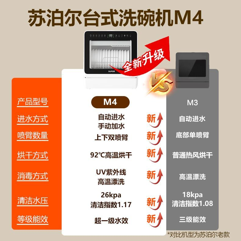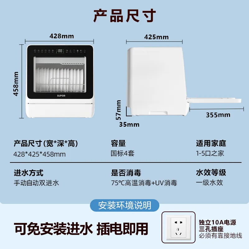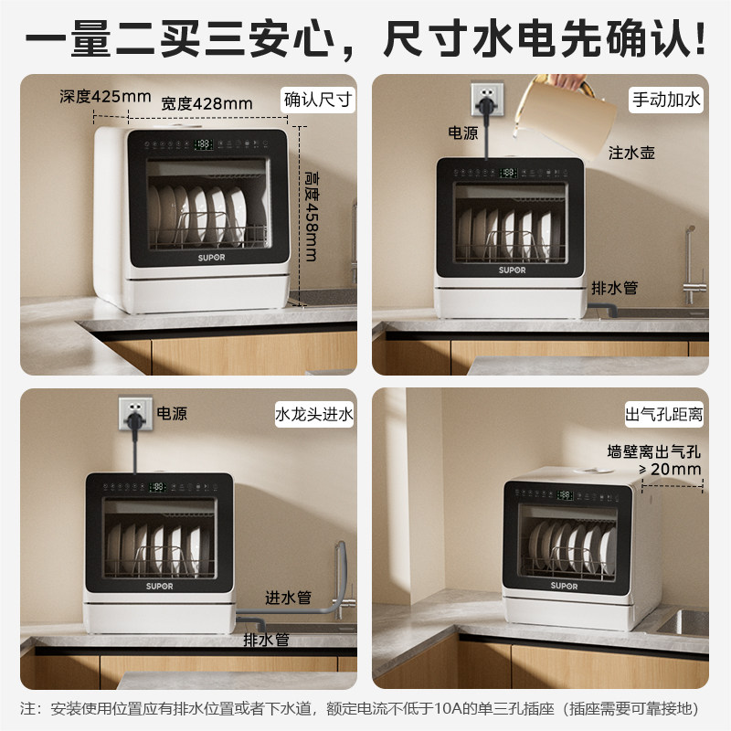 苏泊尔家用台式免安装智能烘干消毒一体洗碗机WMT0402B