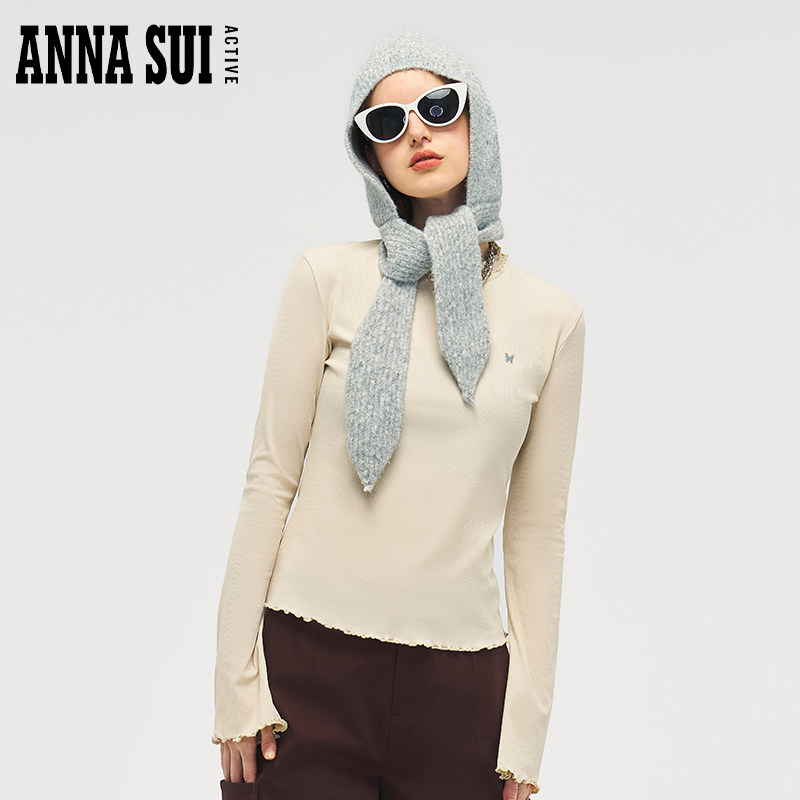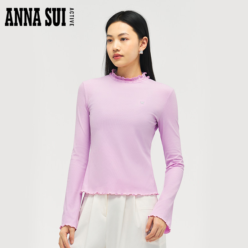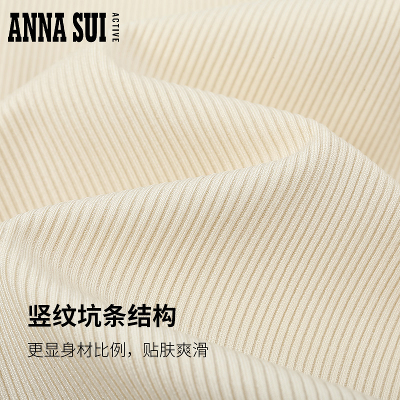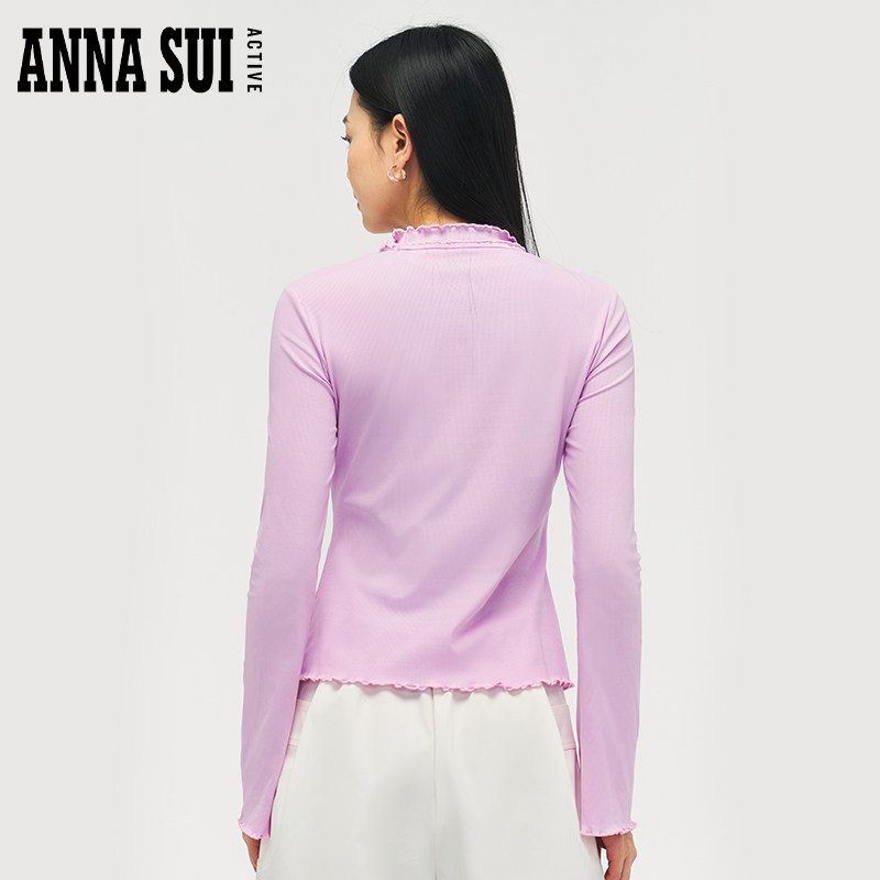 ANNA SUI安娜苏运动 木耳边3A抗菌半高领坑条弹力修身美型打底衫