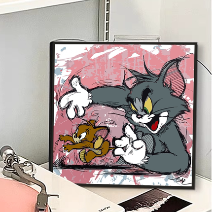 猫和老鼠潮流丙烯画数字油画diy填充填色手工绘卡通油彩画装饰画