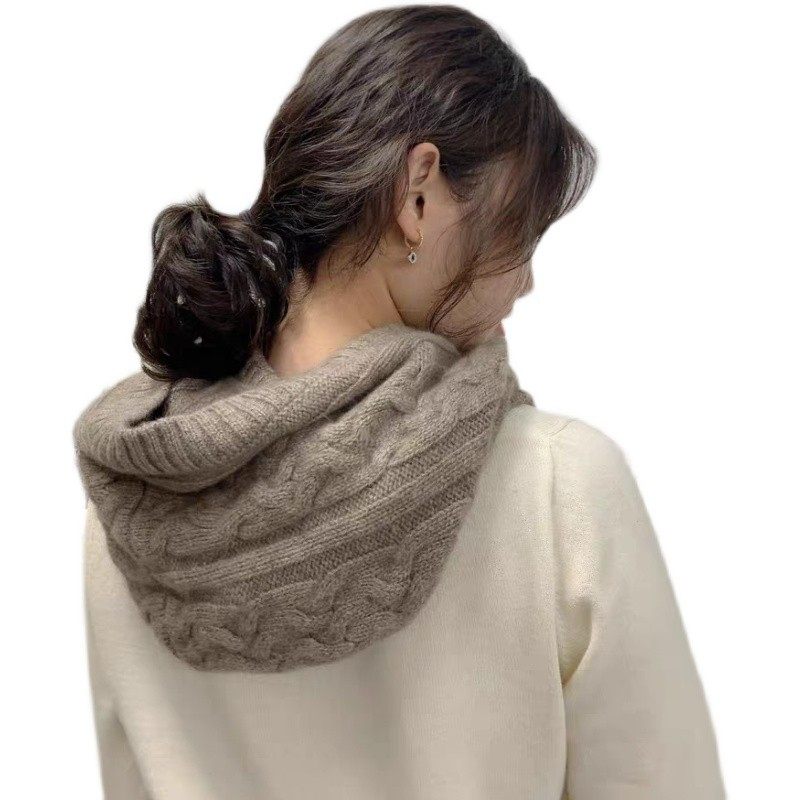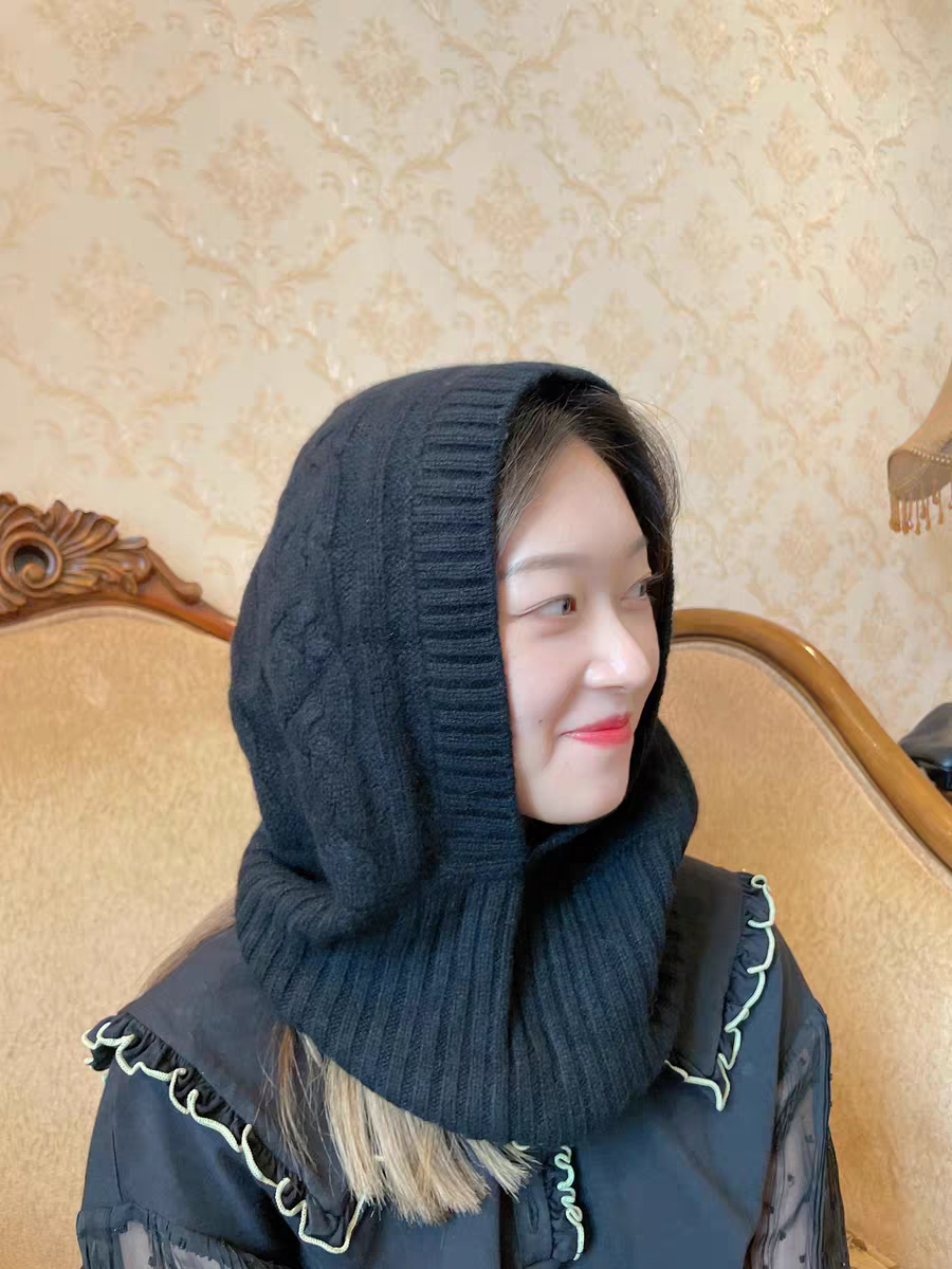 纯羊毛连帽子脖套一体女秋冬百搭保暖时尚针织围脖毛线围巾帽子