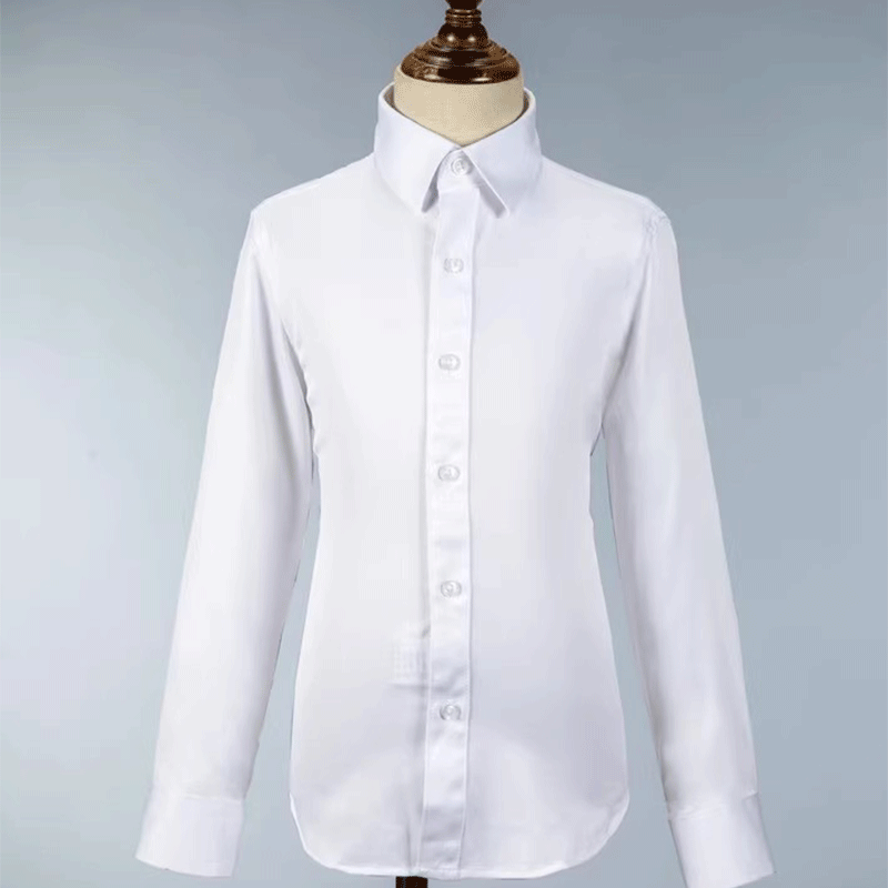 男童加绒衬衫儿童走秀西装白色长袖衬衣花童婚礼小学生衬衫服装男