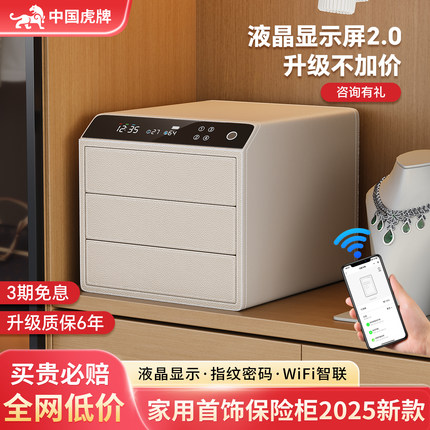 虎牌保险柜家用2025新款首饰保险箱小型防盗密码抽屉指纹wifi智能贵重物品入衣柜隐形看不出来存钱收纳保管箱