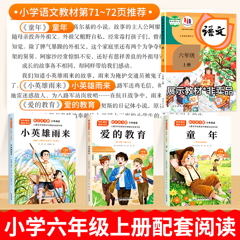 全套3册童年爱的教育和小英雄雨来六年级上册必读的课外书快乐读书吧六上阅读老师推荐小学生课外书籍6上学期配套人教版