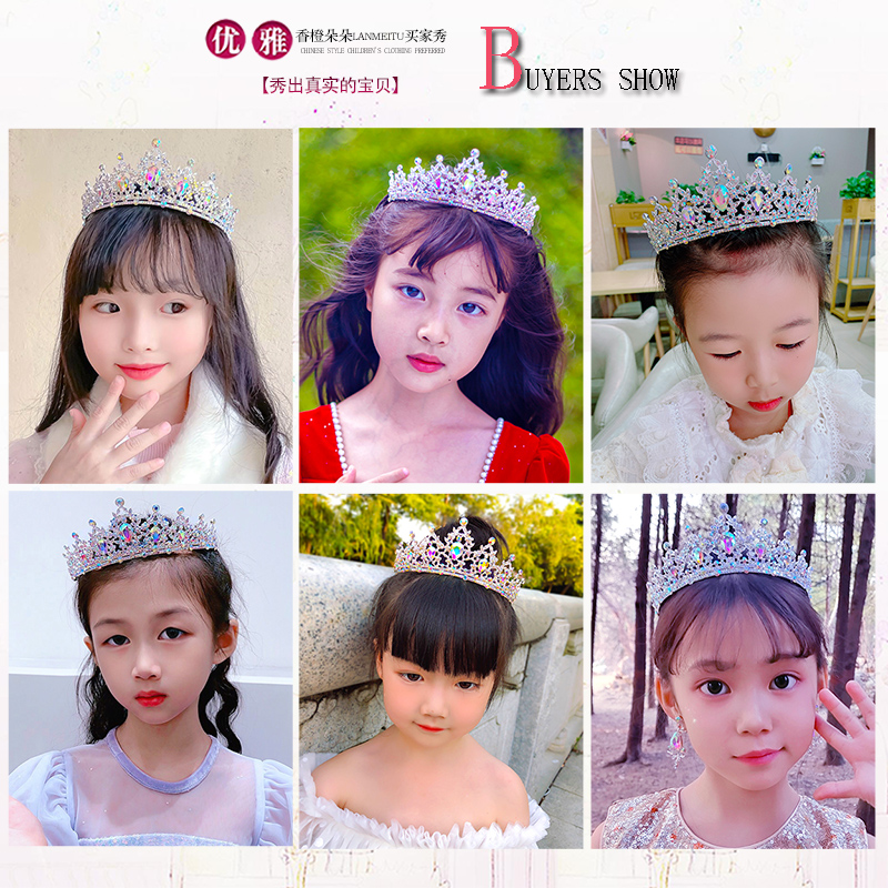 皇冠头饰儿童公主发夹王冠发卡水晶发箍女童宝石彩色头箍女孩发饰