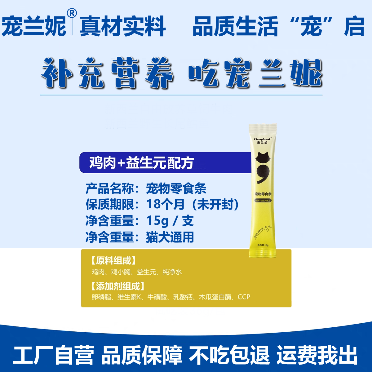 正品宠兰妮宠物零食条猫条狗条鸡肉益生元罐头零食羊奶乳鸽湿粮包