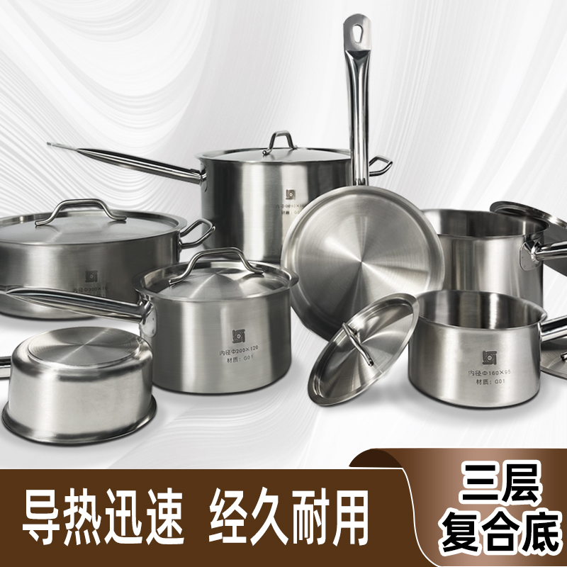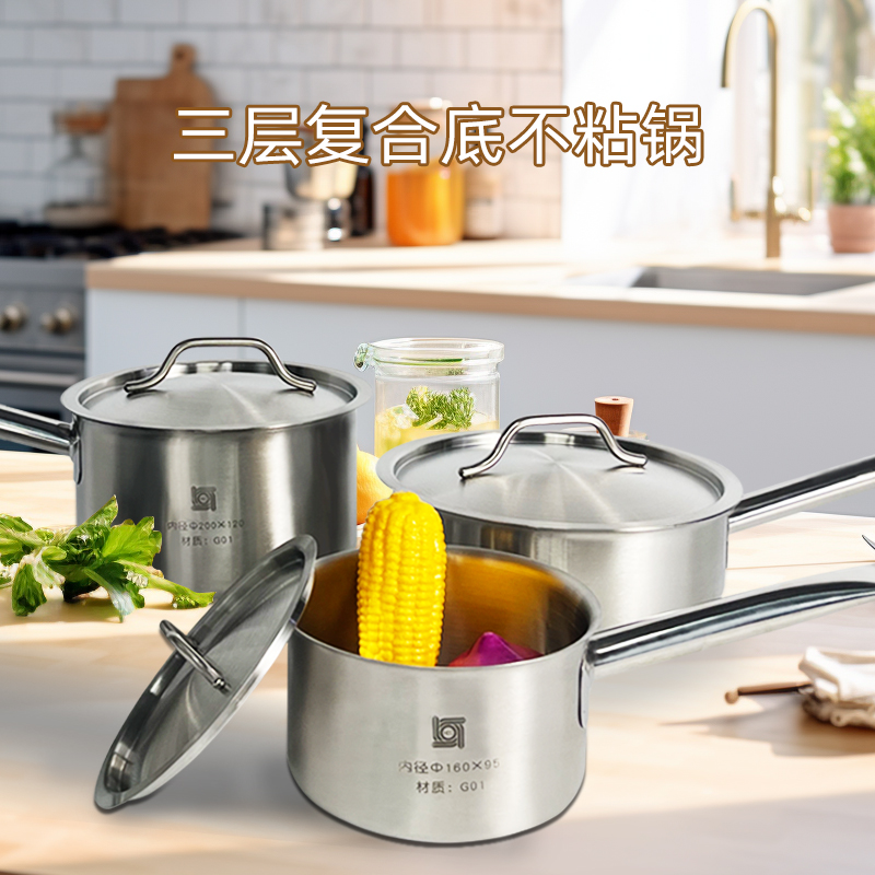 不锈钢复底奶锅加厚汤锅电磁炉通用西式酱汁锅单柄双耳燃气灶适用