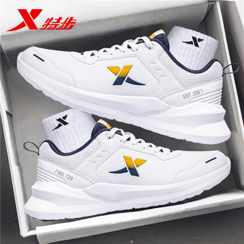 特步男鞋2025新款夏季皮面防水鞋子休闲鞋跑步鞋官方旗舰运动鞋男
