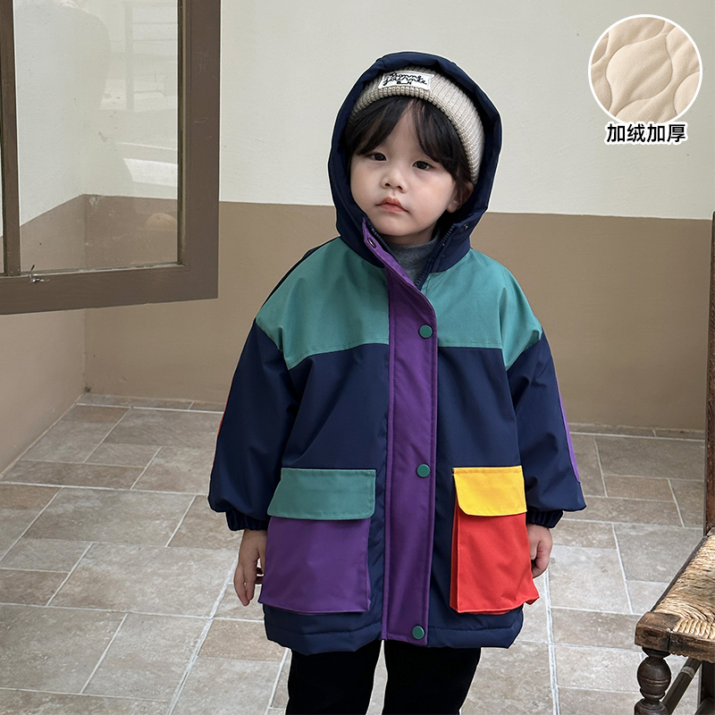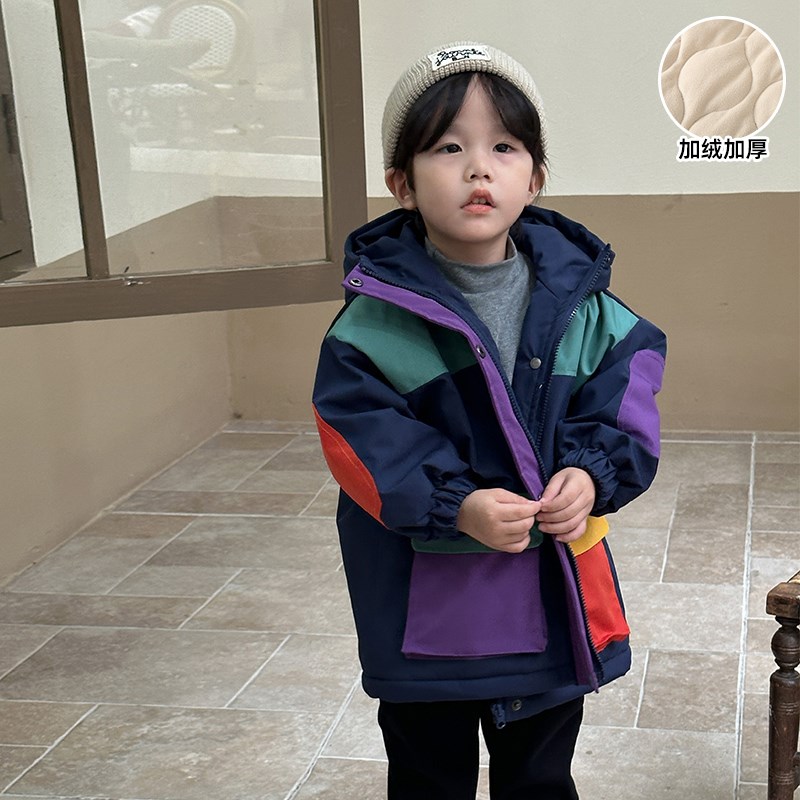 儿童棉服加绒加厚保暖男童装冬季冲锋衣2024新款女童棉衣宝宝外套