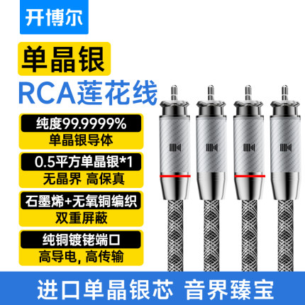 开博尔6N单晶银双莲花信号线RCA功放音响线hifi音频线胆机连接线
