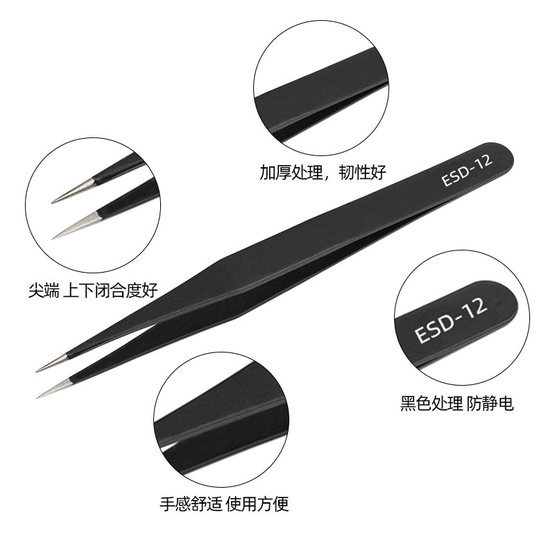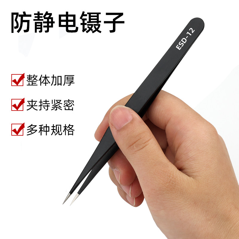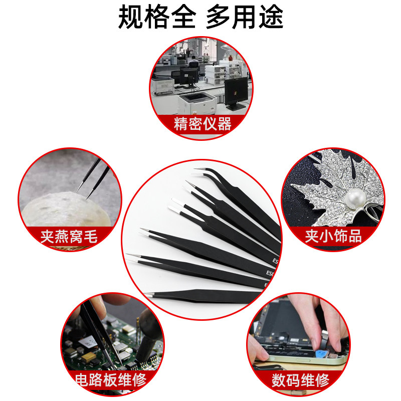 高精密不锈钢镊子弯头细尖头防静电小镊子燕窝挑毛粉刺夹维修工具