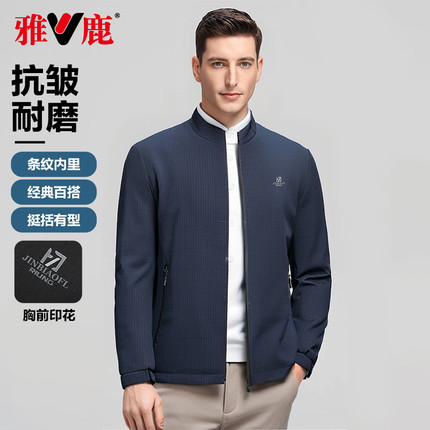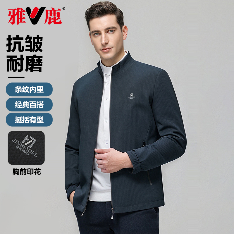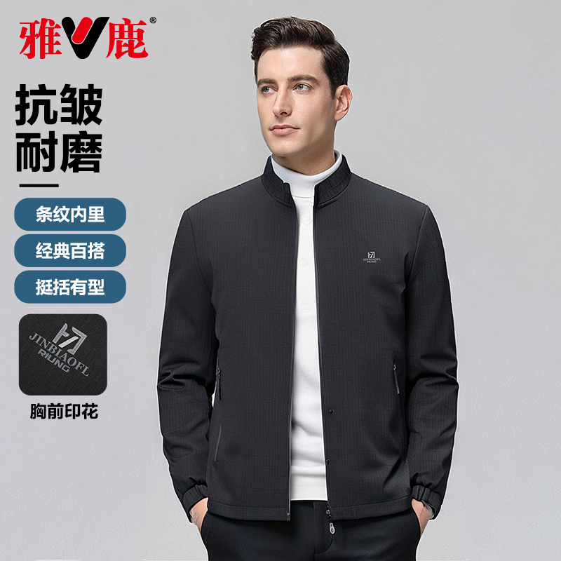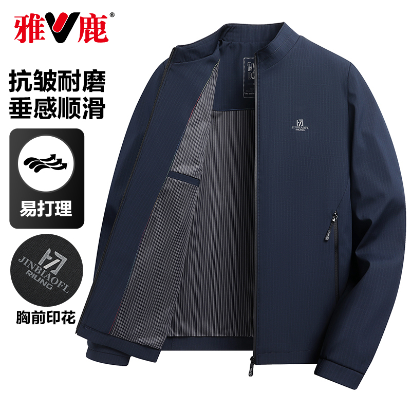 雅鹿立领夹克男2025春季新款商务免烫三防中青年休闲外套男爸爸装