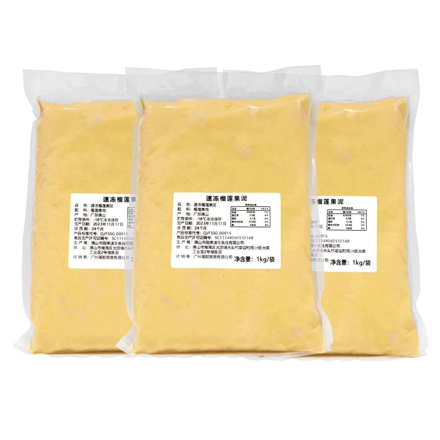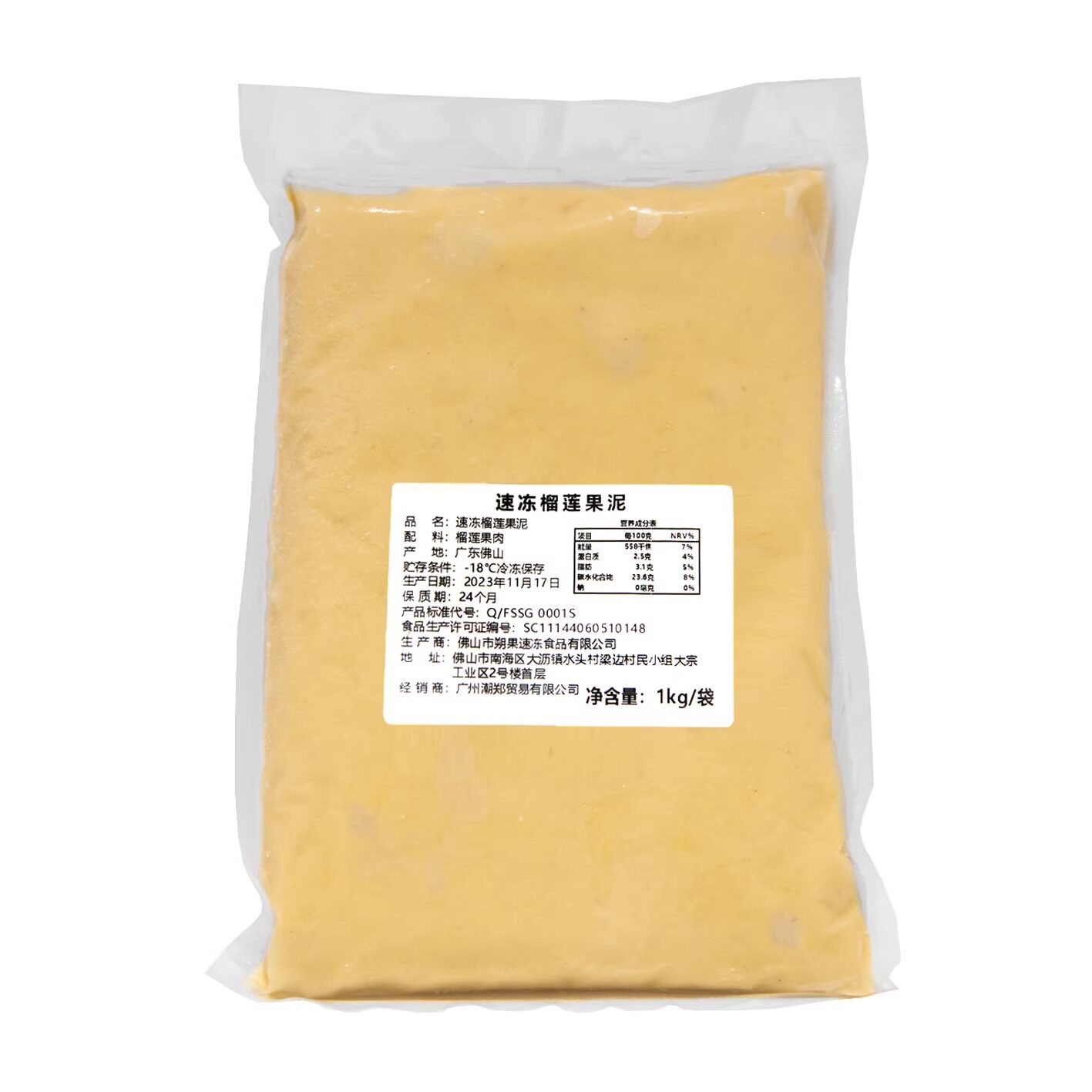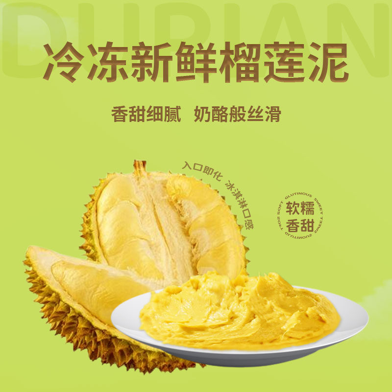 泰国金枕AAA级榴莲泥冷冻无核苏丹王D24榴莲泥肉酱商用烘培顺丰