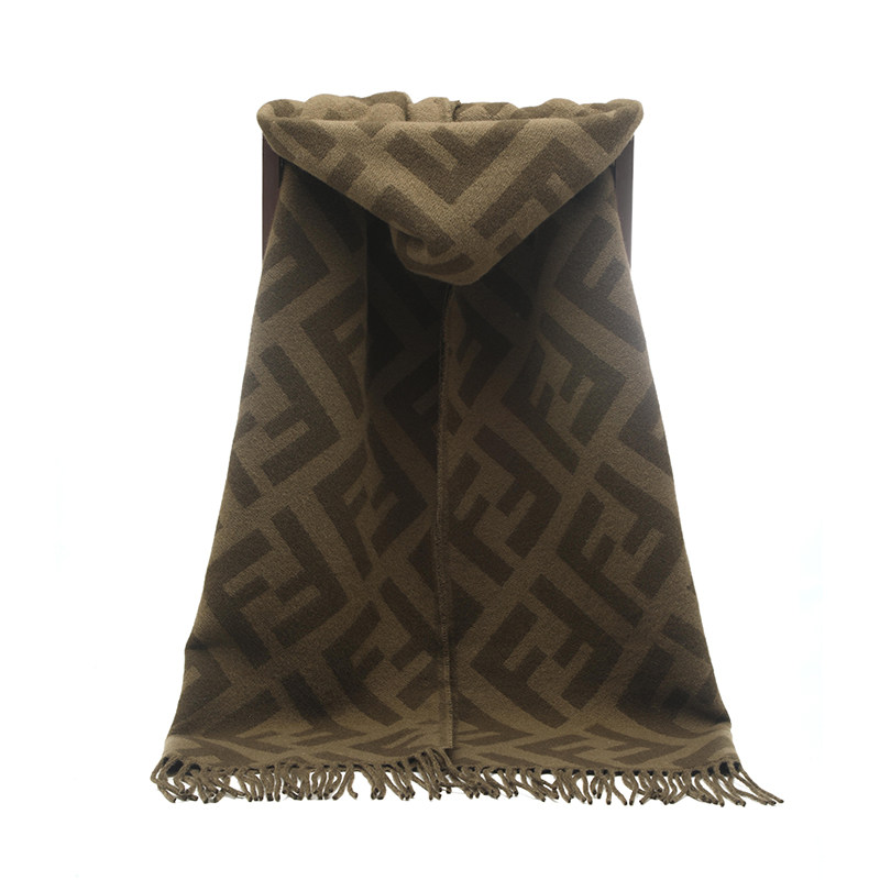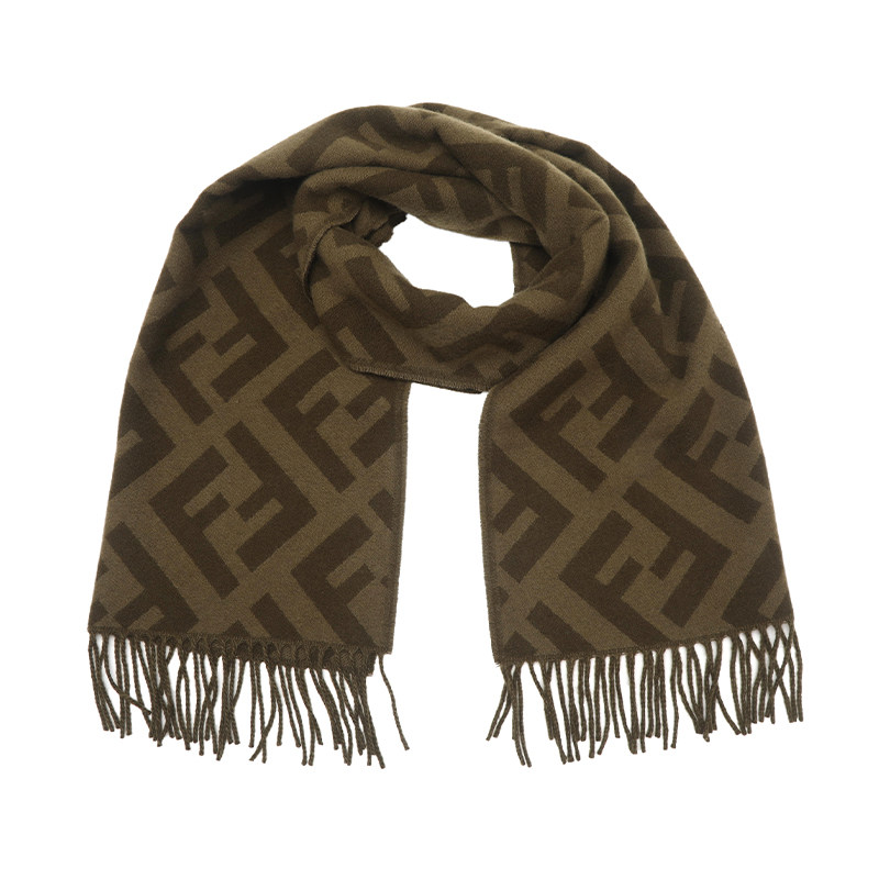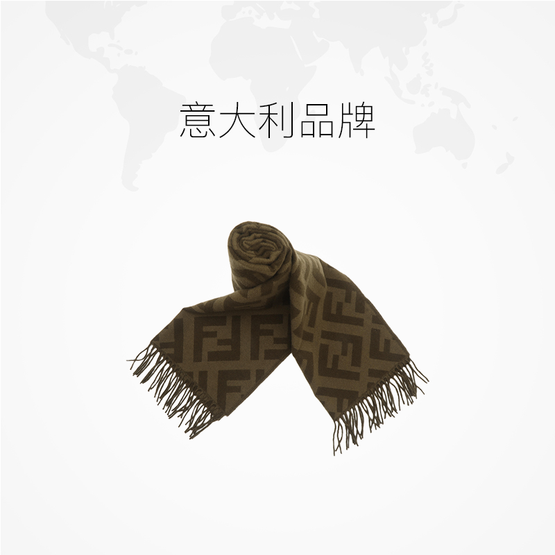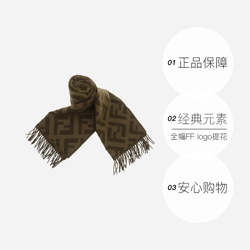 【自营】FENDI芬迪Logo印花羊绒绒线长款流苏围巾男女同款情侣款