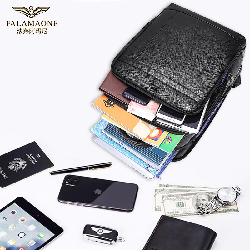 法莱阿玛尼新款男士真皮双肩包办公电脑包旅行包年轻人时尚包包潮