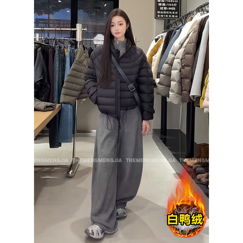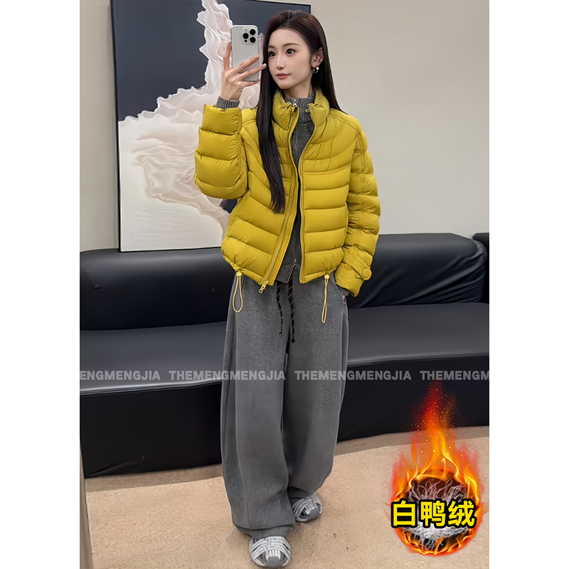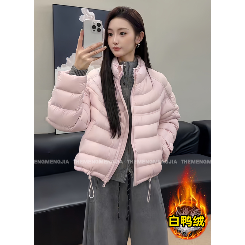 2025冬季新款泡芙排骨羽绒服女短款白鸭绒时尚立领抽绳小个子外套