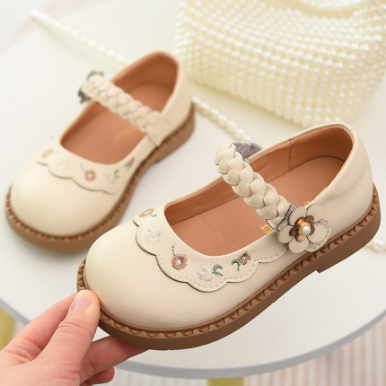 女童小皮鞋真皮绣花公主鞋2025春秋新款儿童鞋子复古软底单鞋童鞋