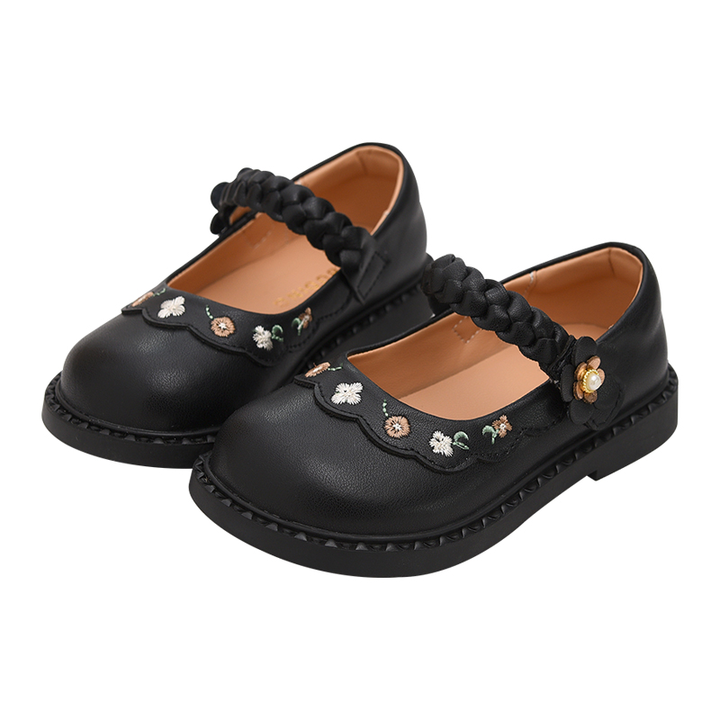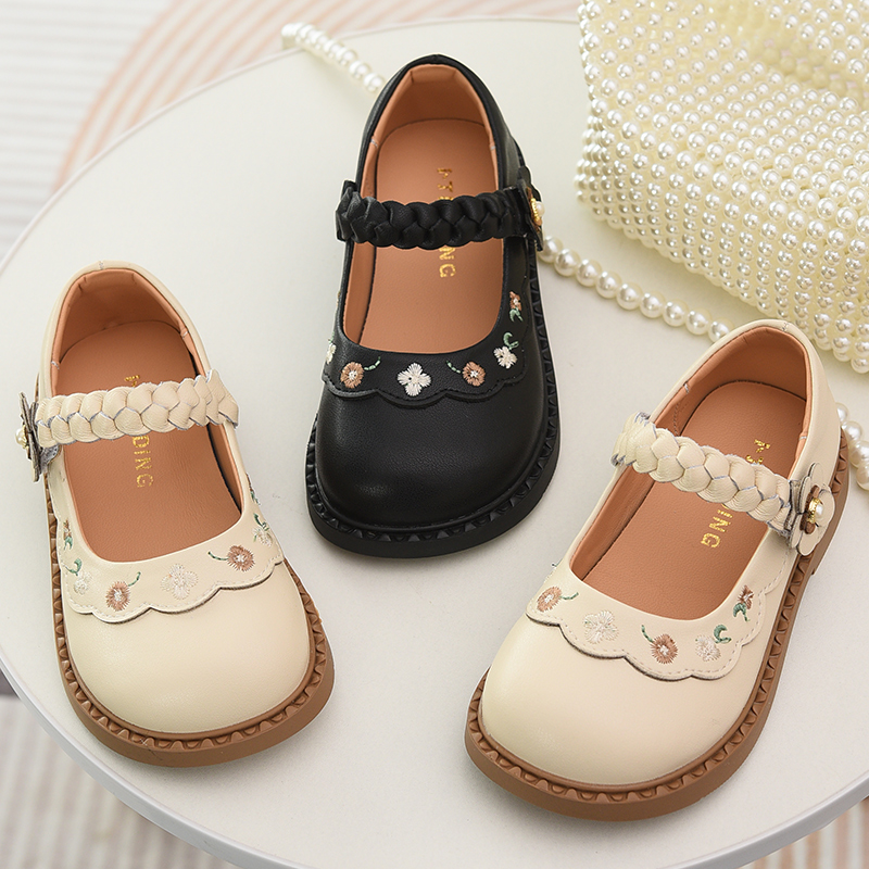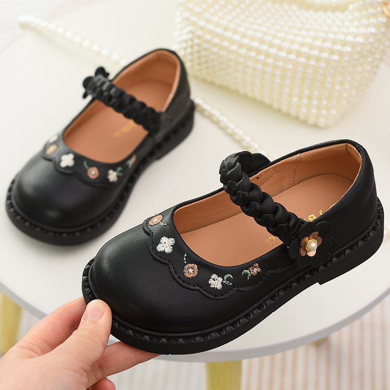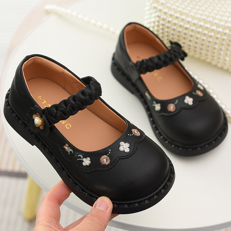春秋真皮女童绣花公主鞋绣花皮鞋