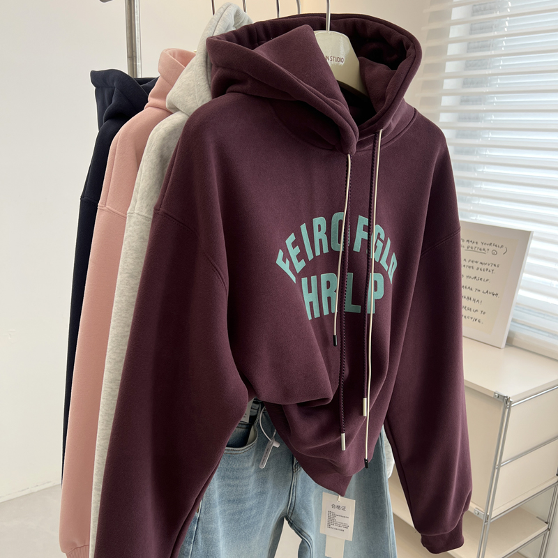 加厚宽松加绒美式复古字母卫衣女