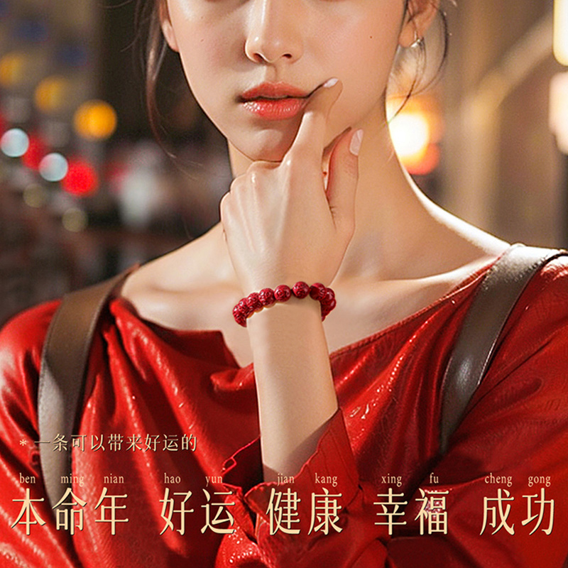 天然朱砂手串六字真言朱砂手链女款兔年本命年男款官方旗舰店