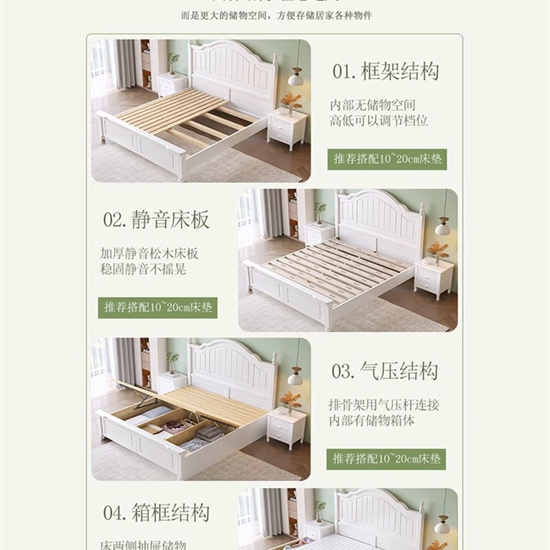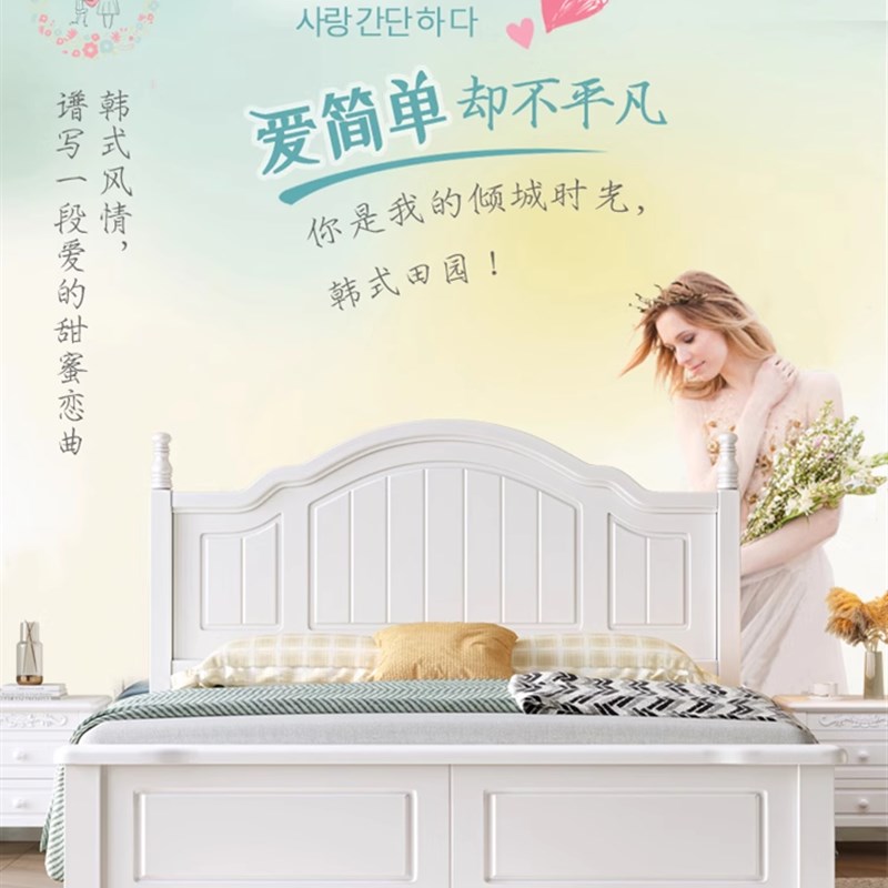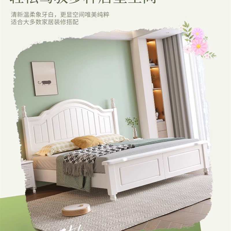 白色实木床1.8米单双人现代简约主卧1.5m奶油风1.2米韩式田园婚床