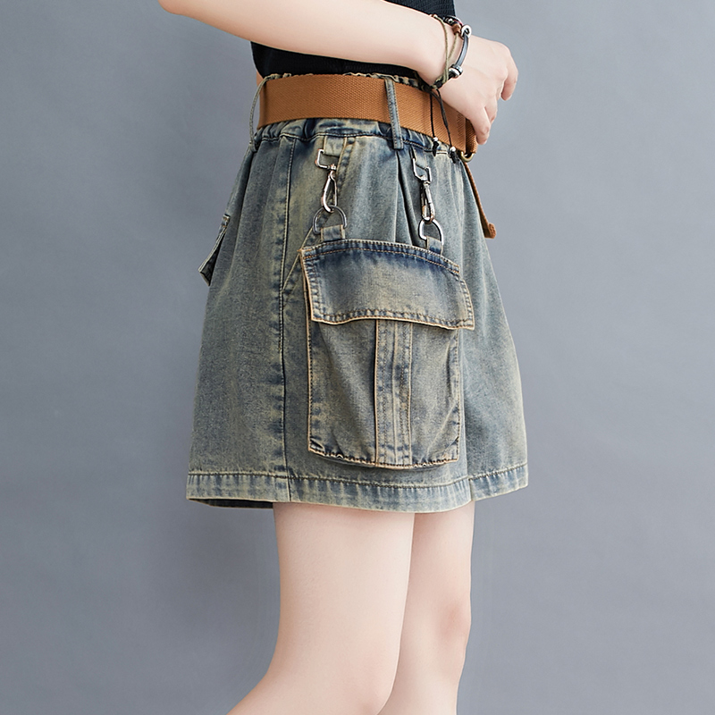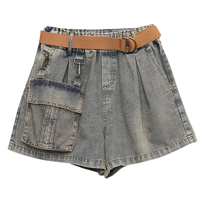 夏季新款个性大口袋a字牛仔短裤