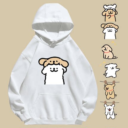马尔济斯线条小狗贴贴周边男女情侣休闲百搭定制外套上衣带帽卫衣