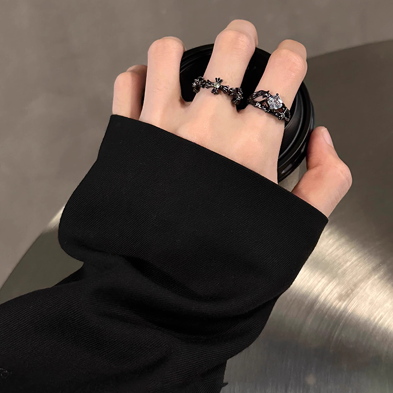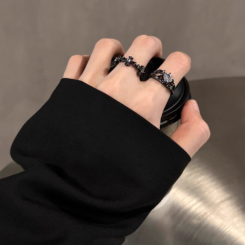 原创设计暗黑星月戒指男女小众设计高级感情侣对戒简约轻奢开口戒
