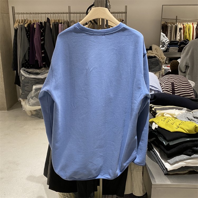 韩国东大门25秋装新款下摆刺绣字母简约纯色圆领休闲宽松纯棉卫衣