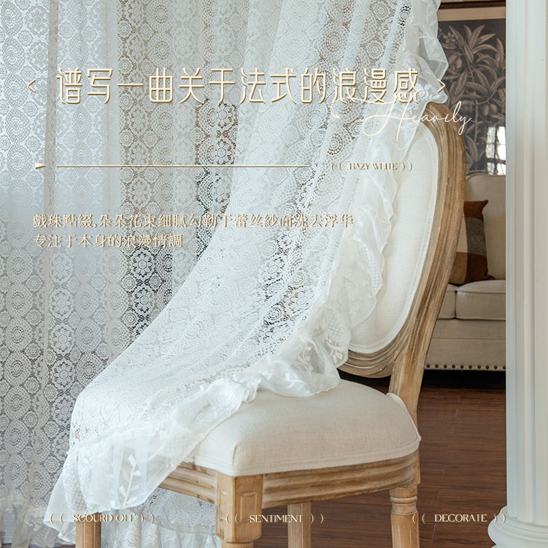 法式复古窗帘洛可可纱帘白色蕾丝纱帘客厅阳台梦幻帘拱形门遮挡帘