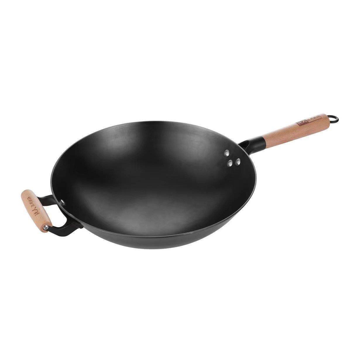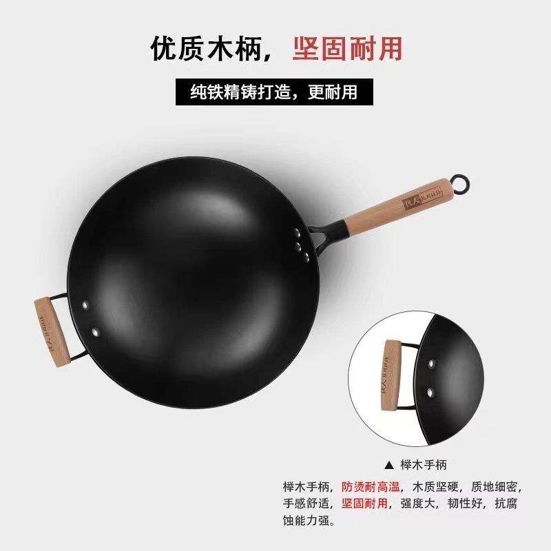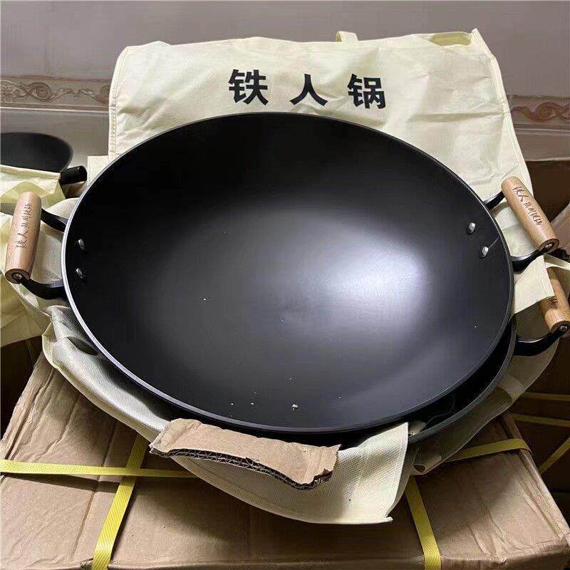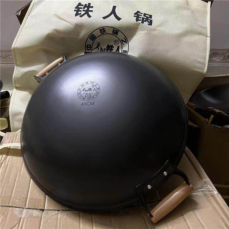 陆川铁人牌铁人锅无涂层生铁锅家用老式平底圆底炒菜不粘锅铸铁锅