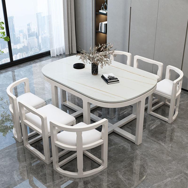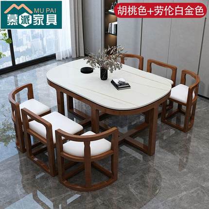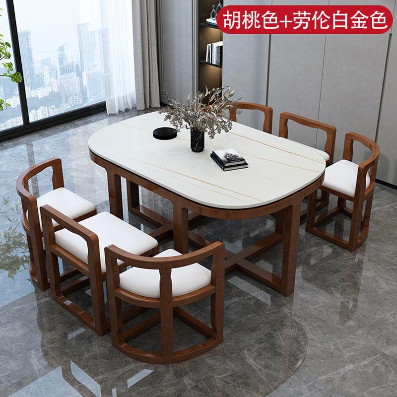 大理石餐桌椅组合方圆形实木餐桌简约现代小户型家用网红隐形饭桌