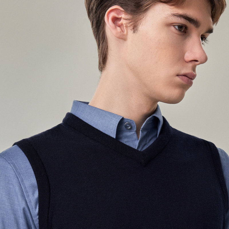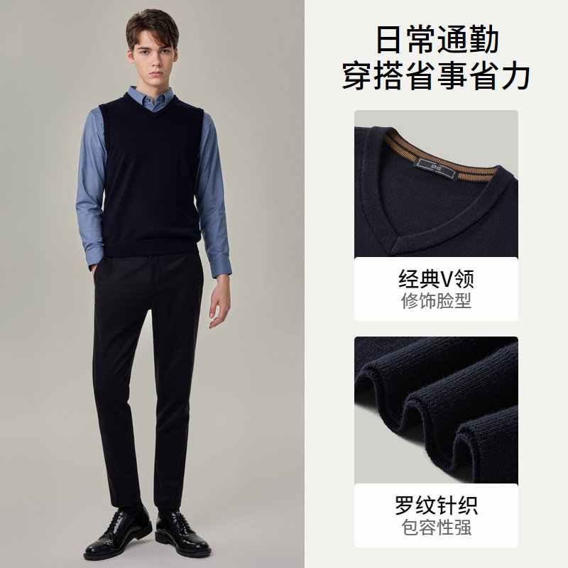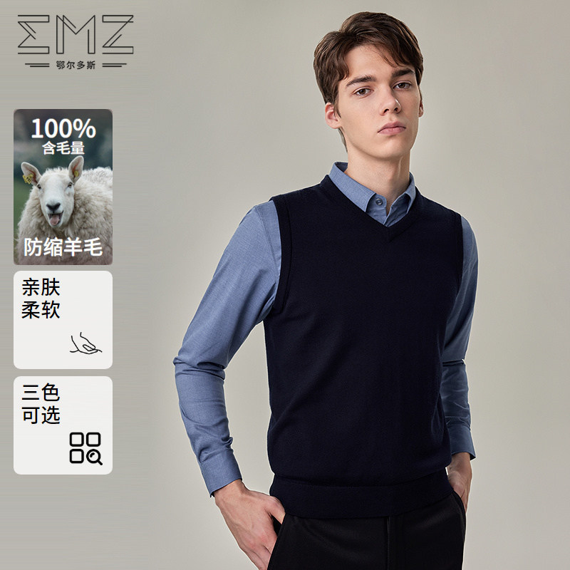 【可机洗】emz鄂尔多斯纯羊毛商务休闲简约V领背心针织衫毛衣男