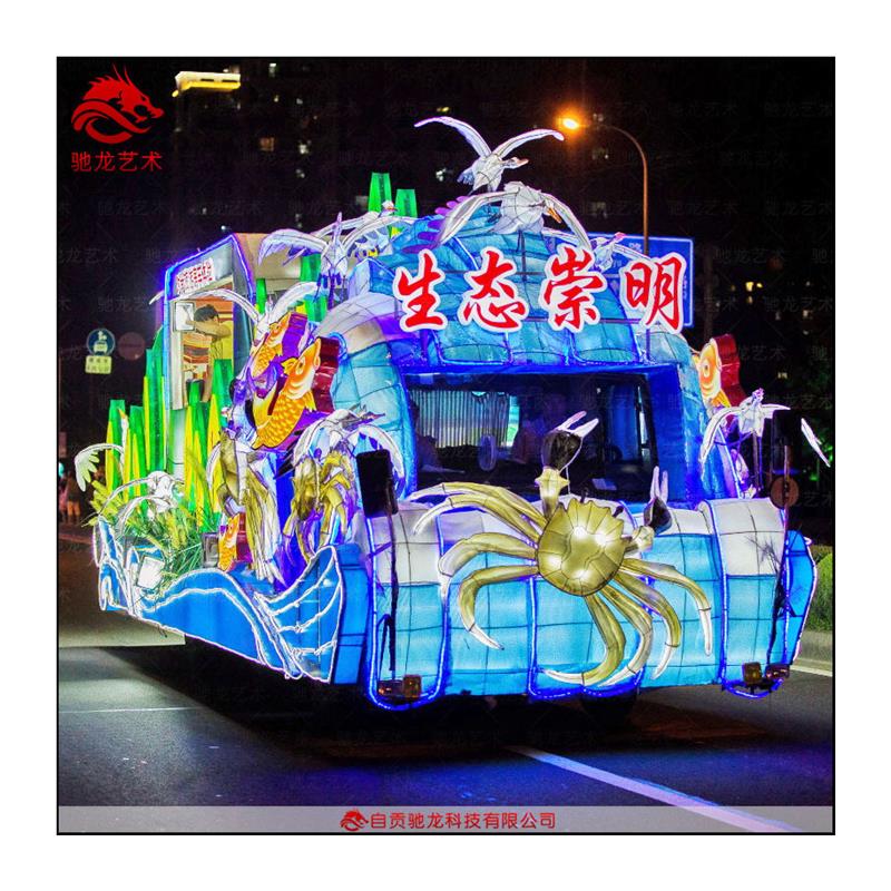 春节喜庆主题花车打造灯会公司布艺造型发光巡游彩车彩船制作