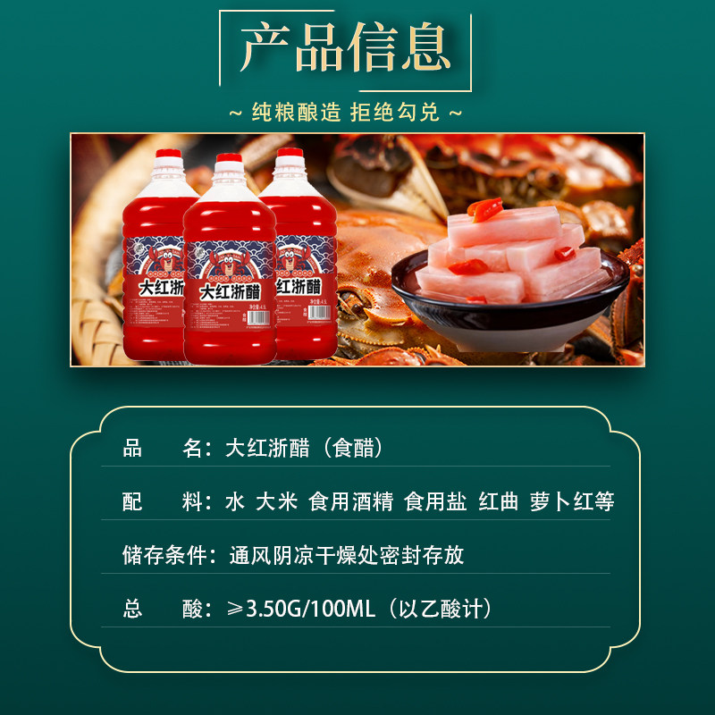 酿造大红浙醋商用烤鸭上色醋泡萝卜料酸甜红醋蘸虾蟹泡菜专用食醋