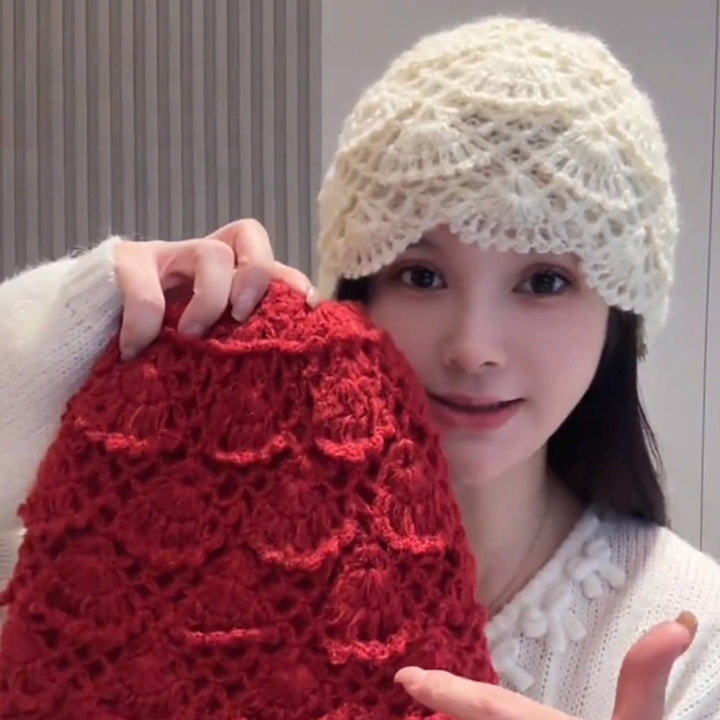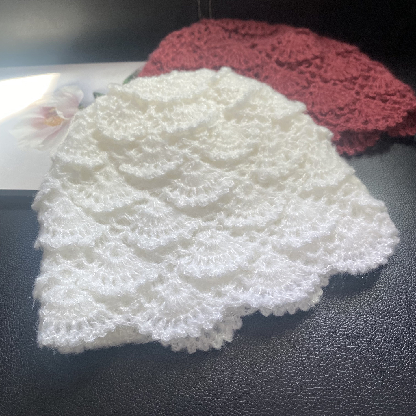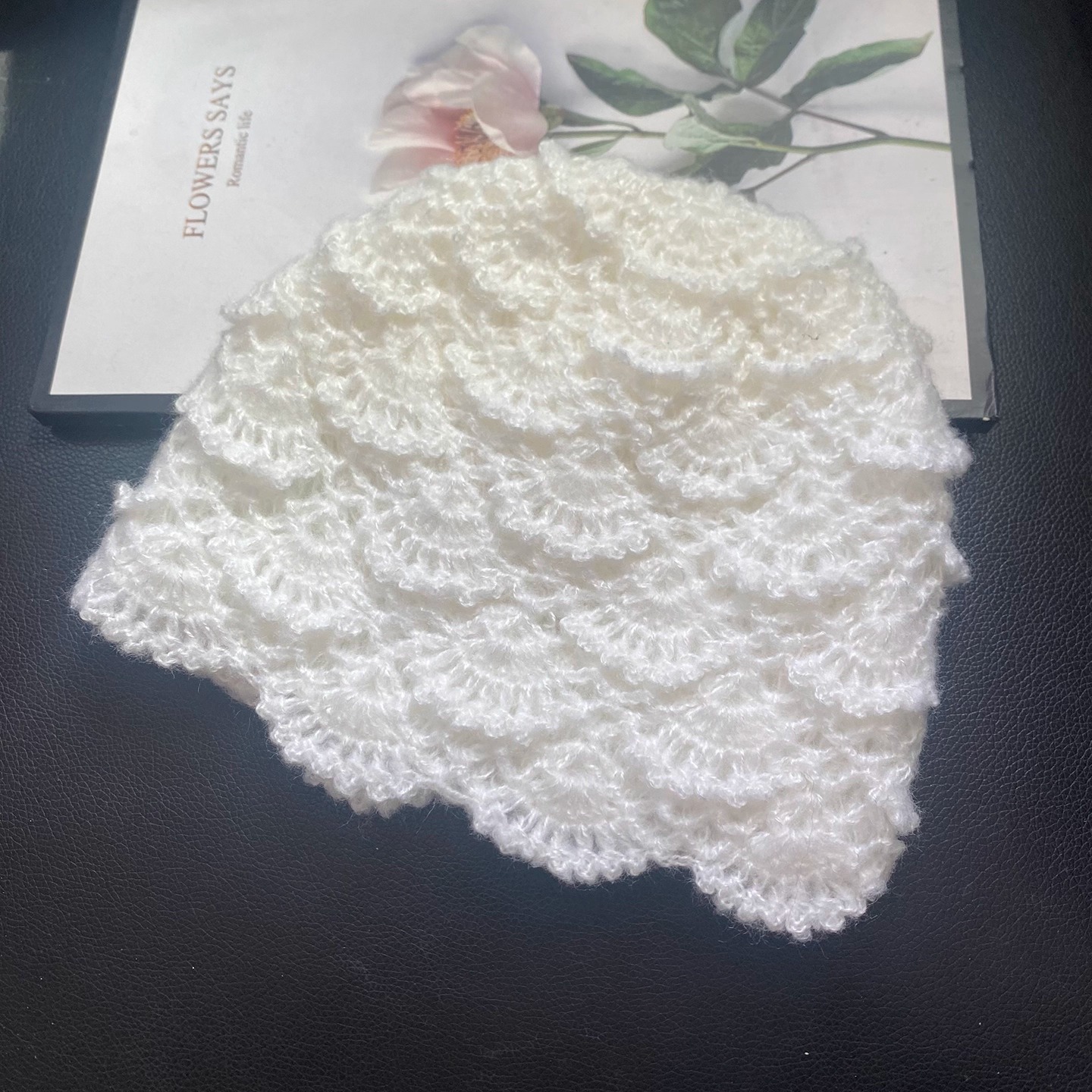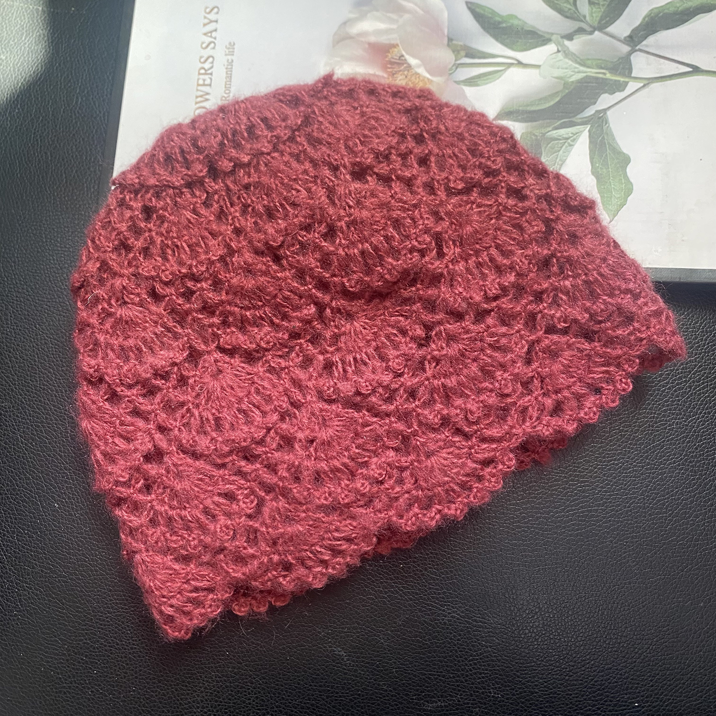 韩系手工钩花镂空马海毛针织帽