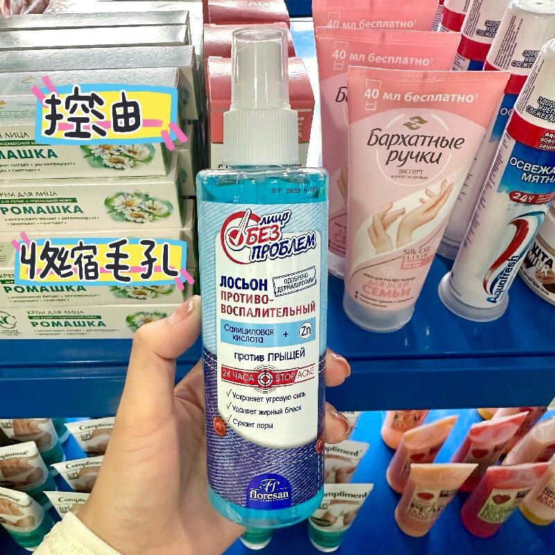 俄罗斯Floresan水杨酸爽肤水控油缩小毛孔湿敷去粉刺闭口200ml